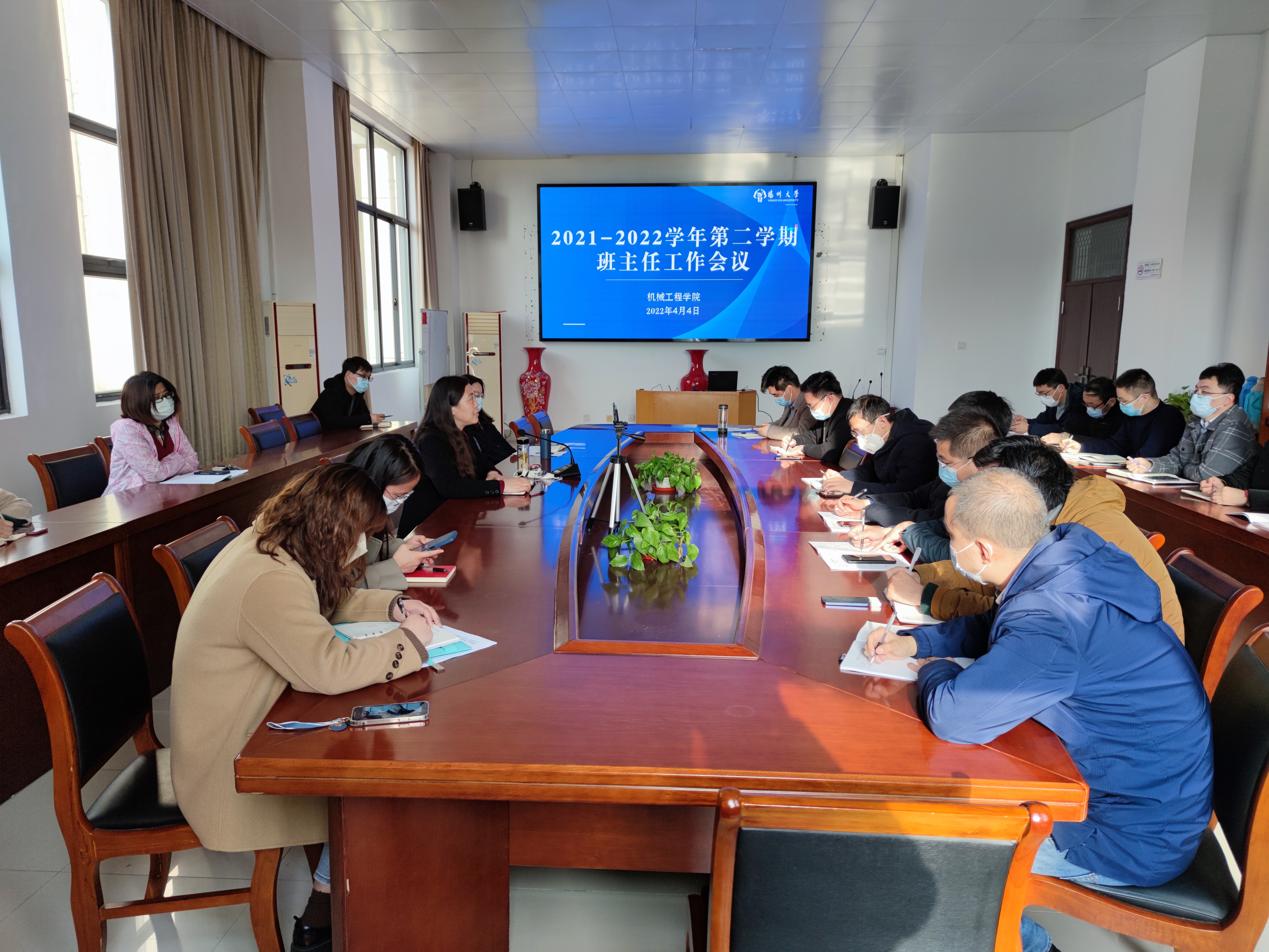 4月4日下午,我院于力行楼s318会议室举行2021-2022学年第二学期班主任工作会议。此次会议采取线上线下相结合的方式进行。学院党委副书记张平主持会议、学院全体辅导员、班主任参加会议。