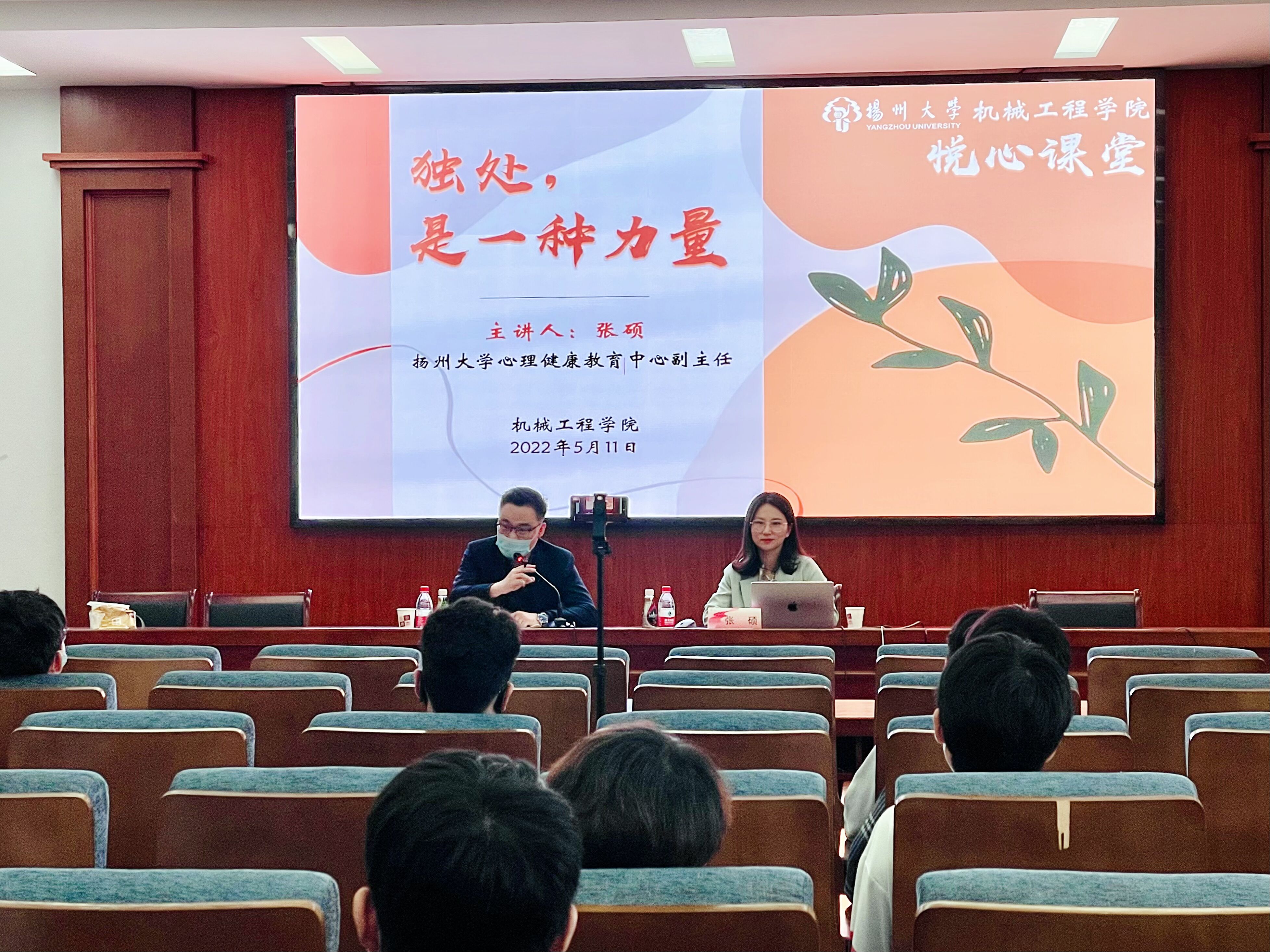 5月11日下午,我院在力行楼401报告厅,以线下开展与线上直播相结合的形式,举办了5﹒25大学生心理健康月系列活动之“独处,是一种力量”心理健康教育主题讲座,此次讲座也是我院“悦心课堂”子活动之一。讲座由校心理健康教育中心副主任、中国心理学会注册心理师、国家二级心理咨询师张硕老师主讲,由院团委副书记汪志国老师主持。