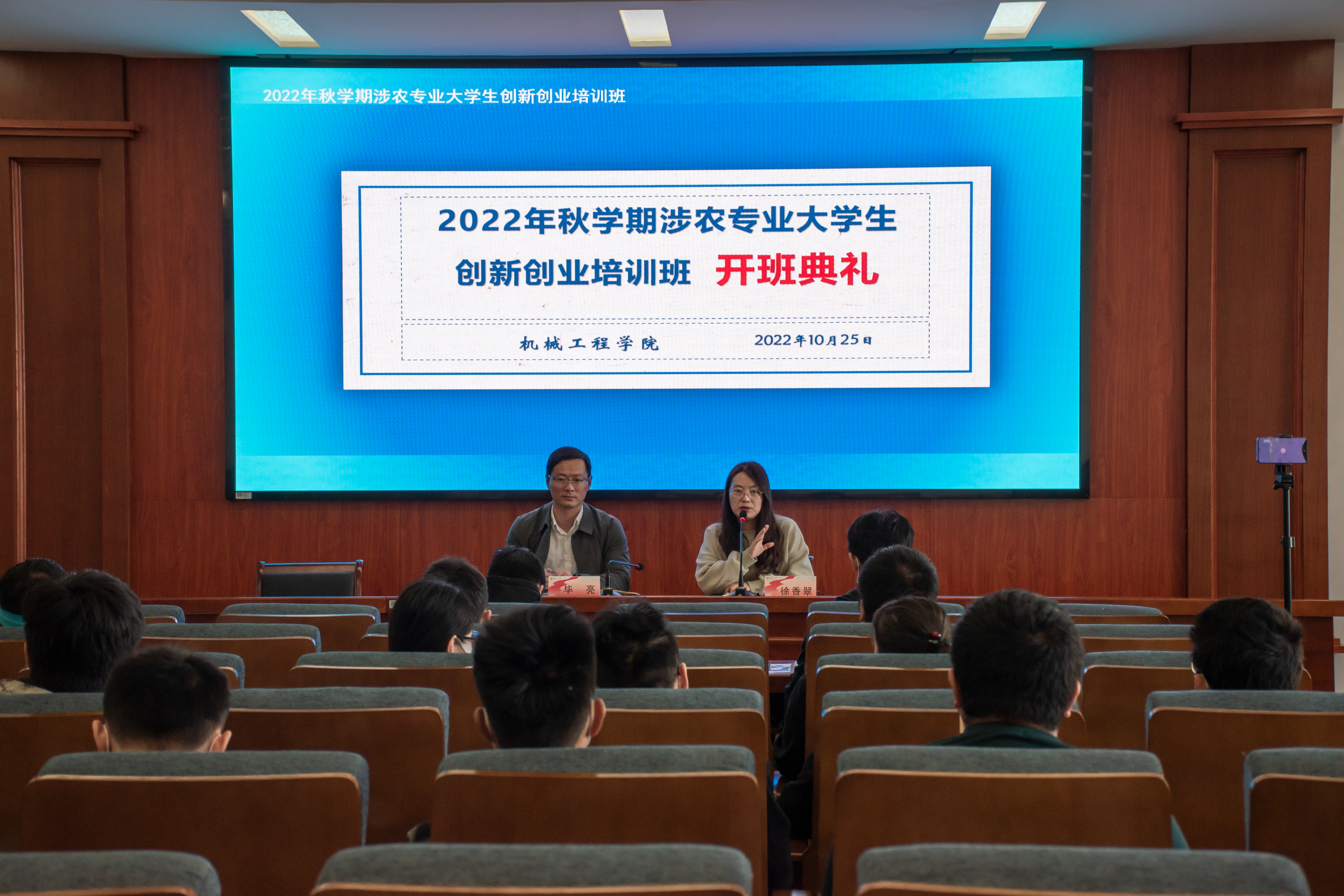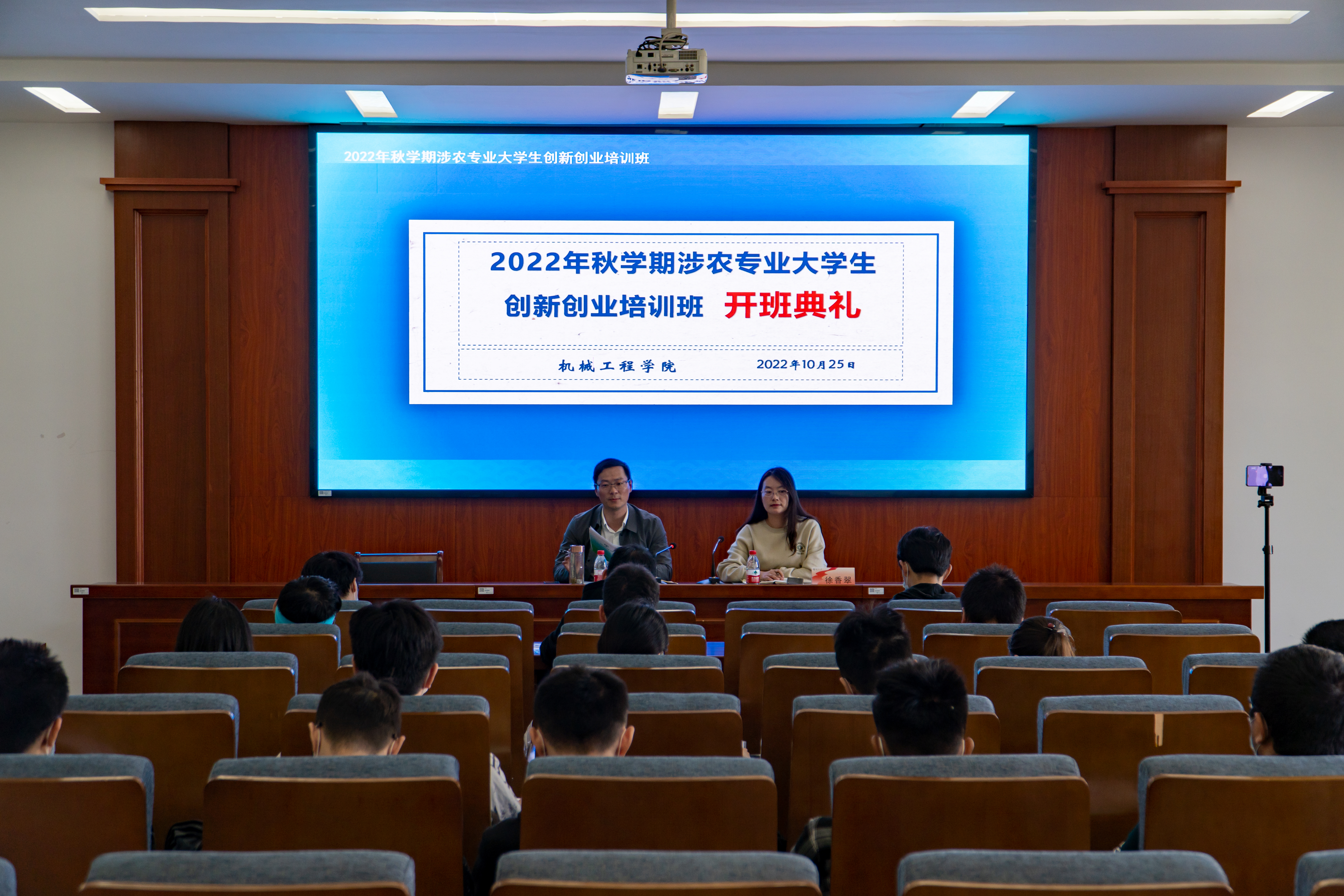 10月25日下午,我院于力行楼401报告厅举办涉农专业大学生创新创业培训班开班典礼。院党委副书记毕亮出席典礼,团委书记徐香翠主持典礼,我院2020级农机专业本科生参加。
