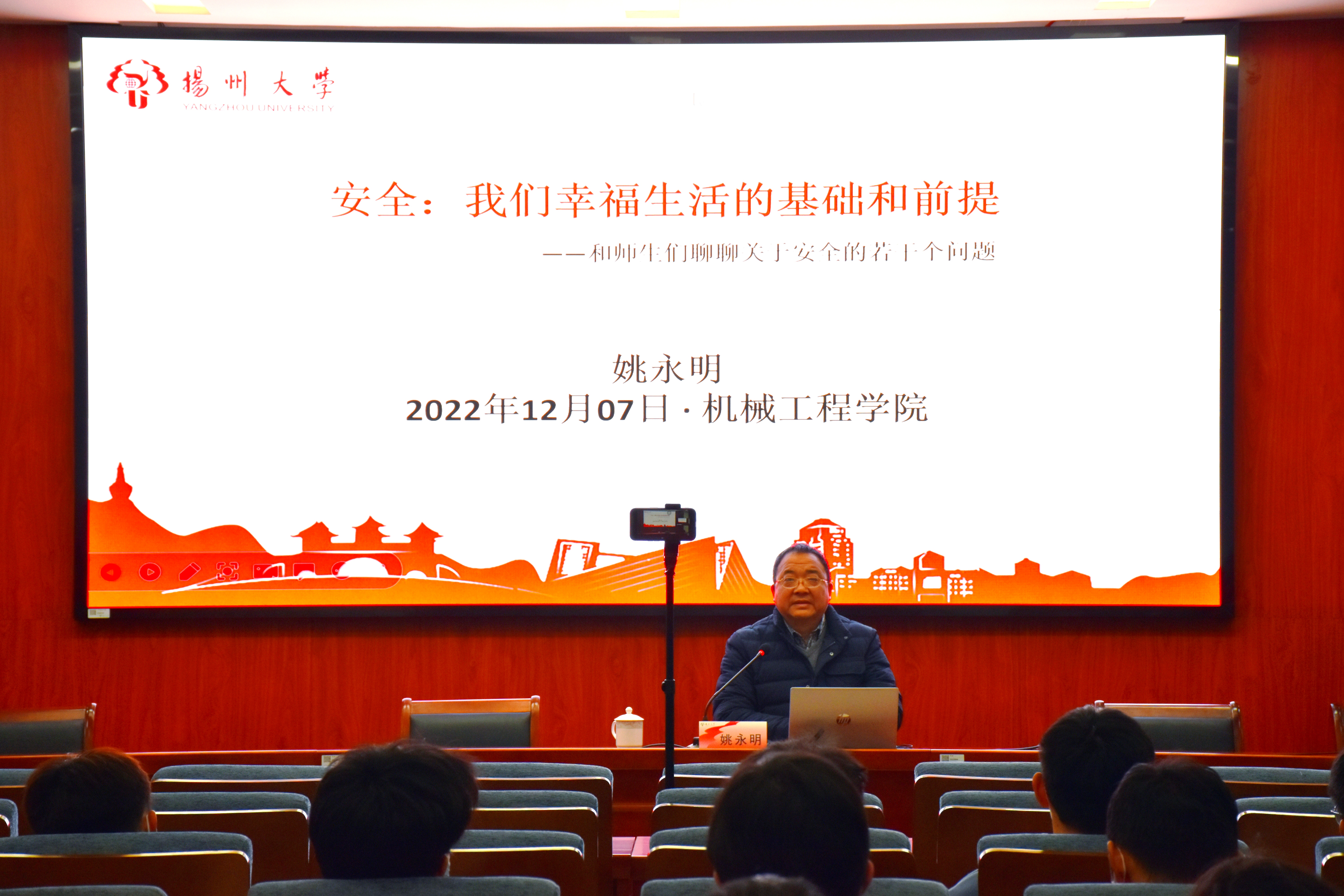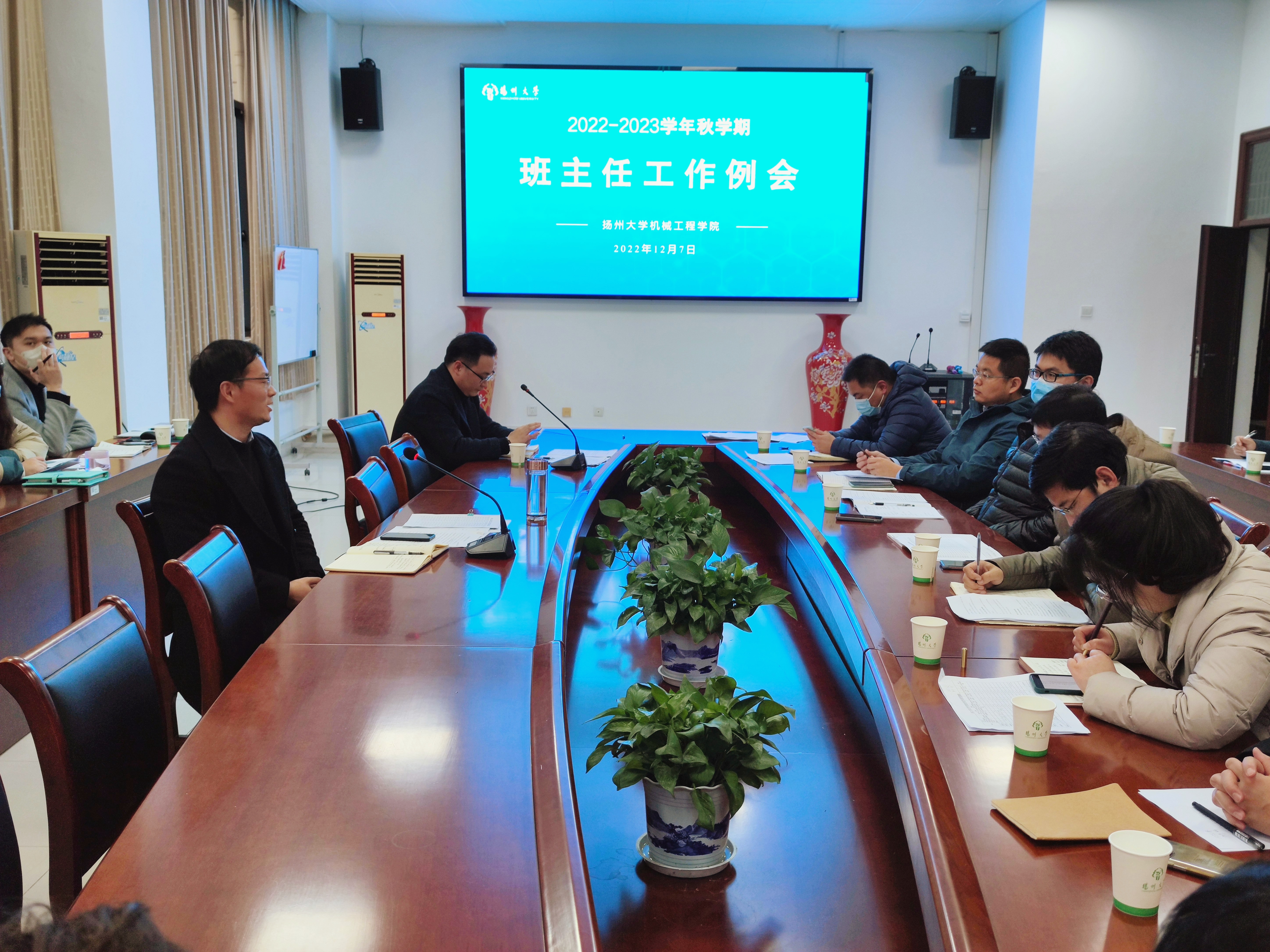 12月7日下午,我院先后于力行楼s318会议室、401报告厅召开2022-2023学年秋学期班主任工作例会和校园安全文明教育讲座。学院全体班主任参加例会,扬州大学保卫处处长、人武部部长姚永明应邀开展讲座,全体班主任、学生干部参加讲座。院党委副书记毕亮主持例会和讲座。