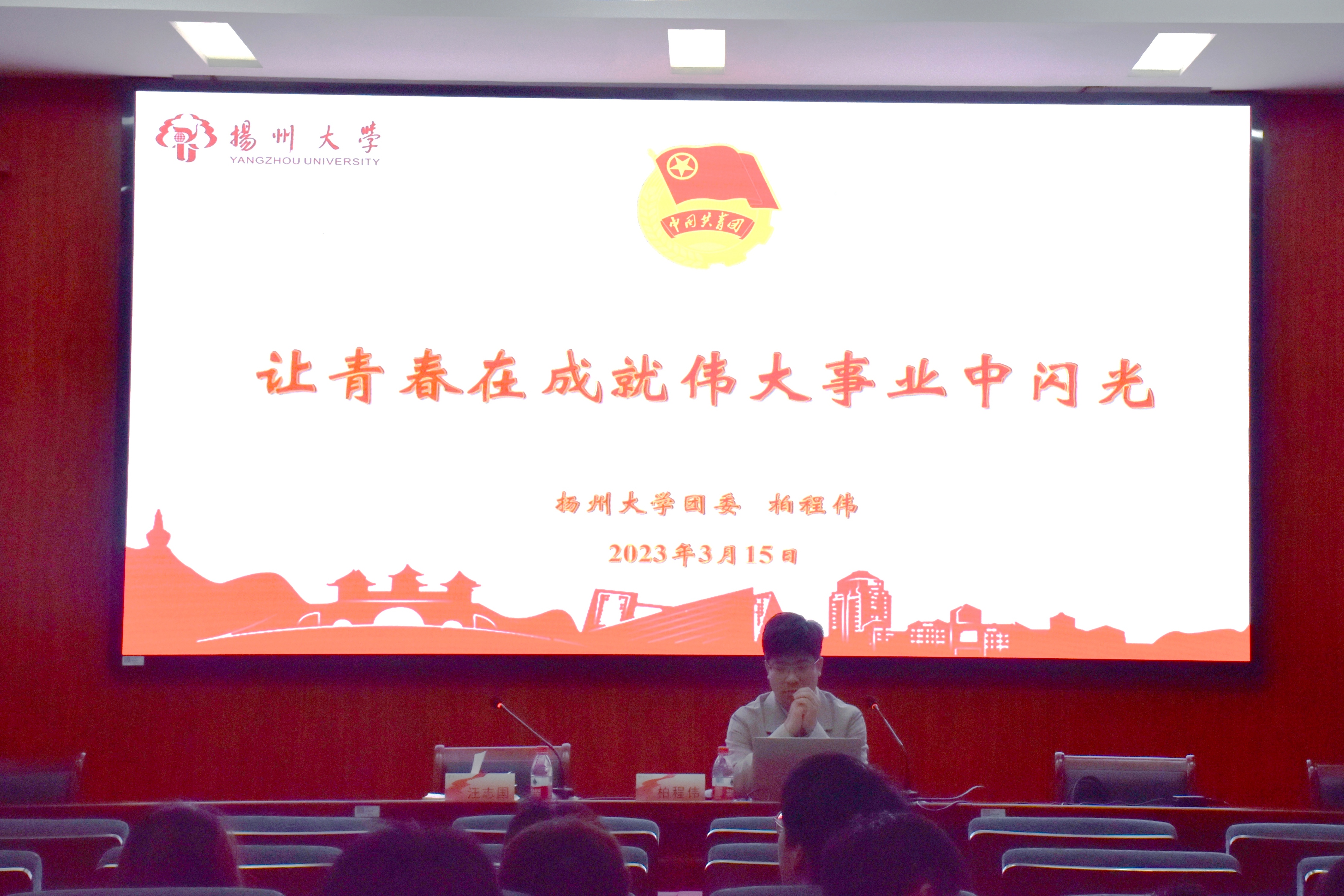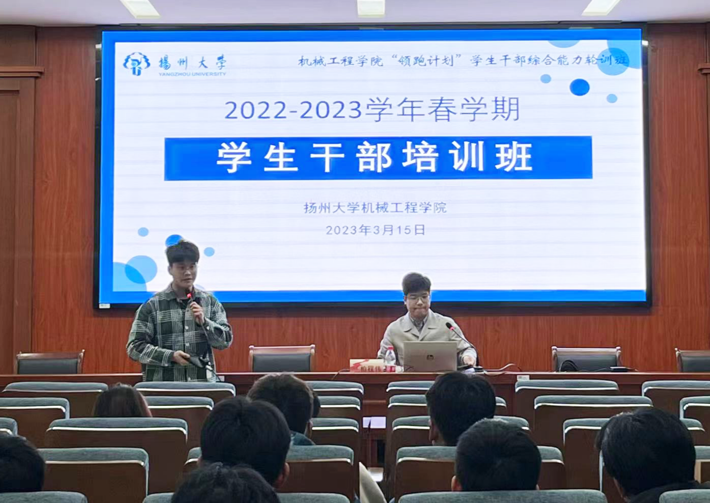 3月15日晚,我院在力行楼401报告厅开展了“让青春在成就伟大事业中闪光”——第六期学干培训班讲座。本次讲座由校团委校园文化与社团管理中心副主任柏程伟主讲,院团委副书记汪志国主持,学院各学生组织主席团成员,本硕各班级班长团支书参加。