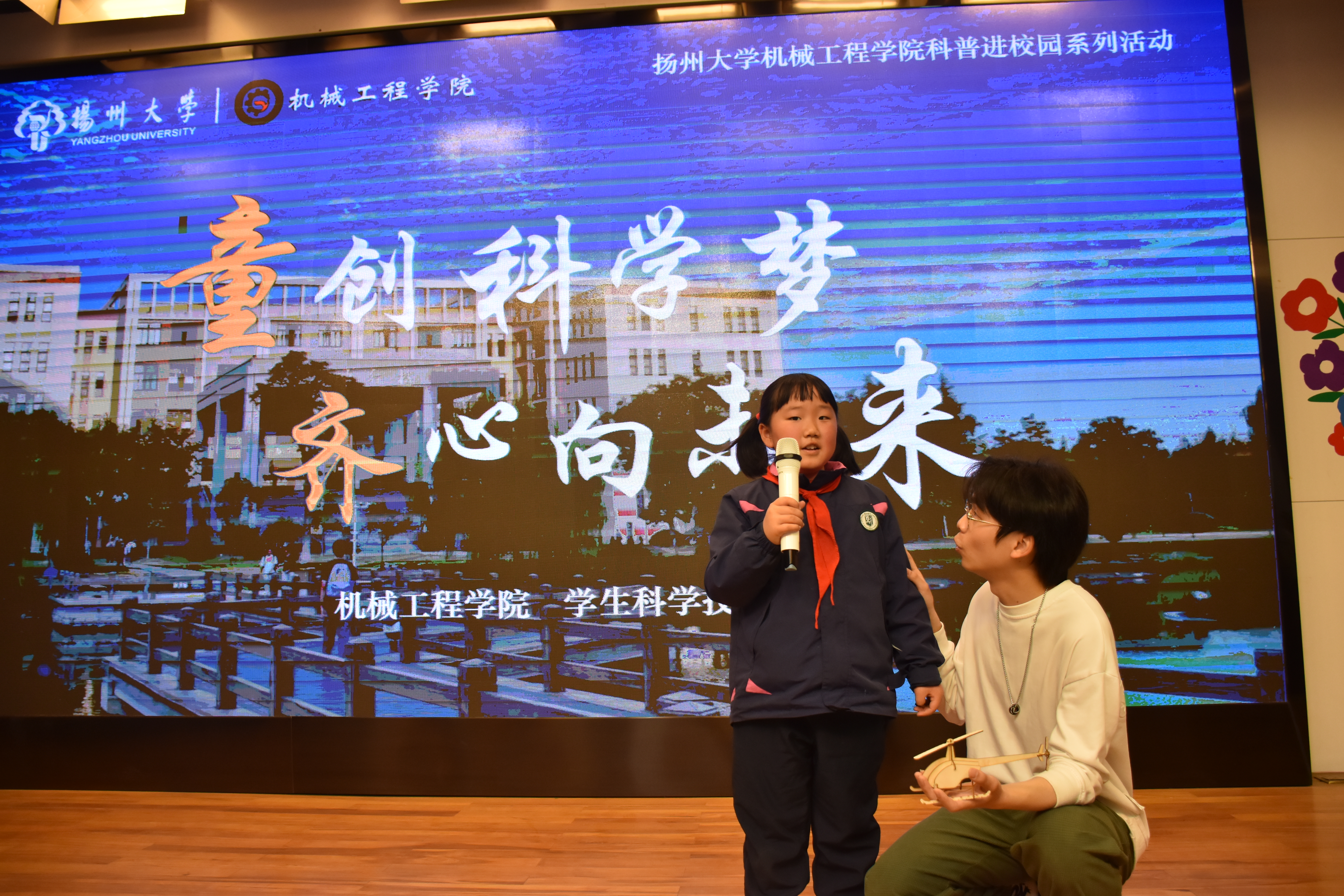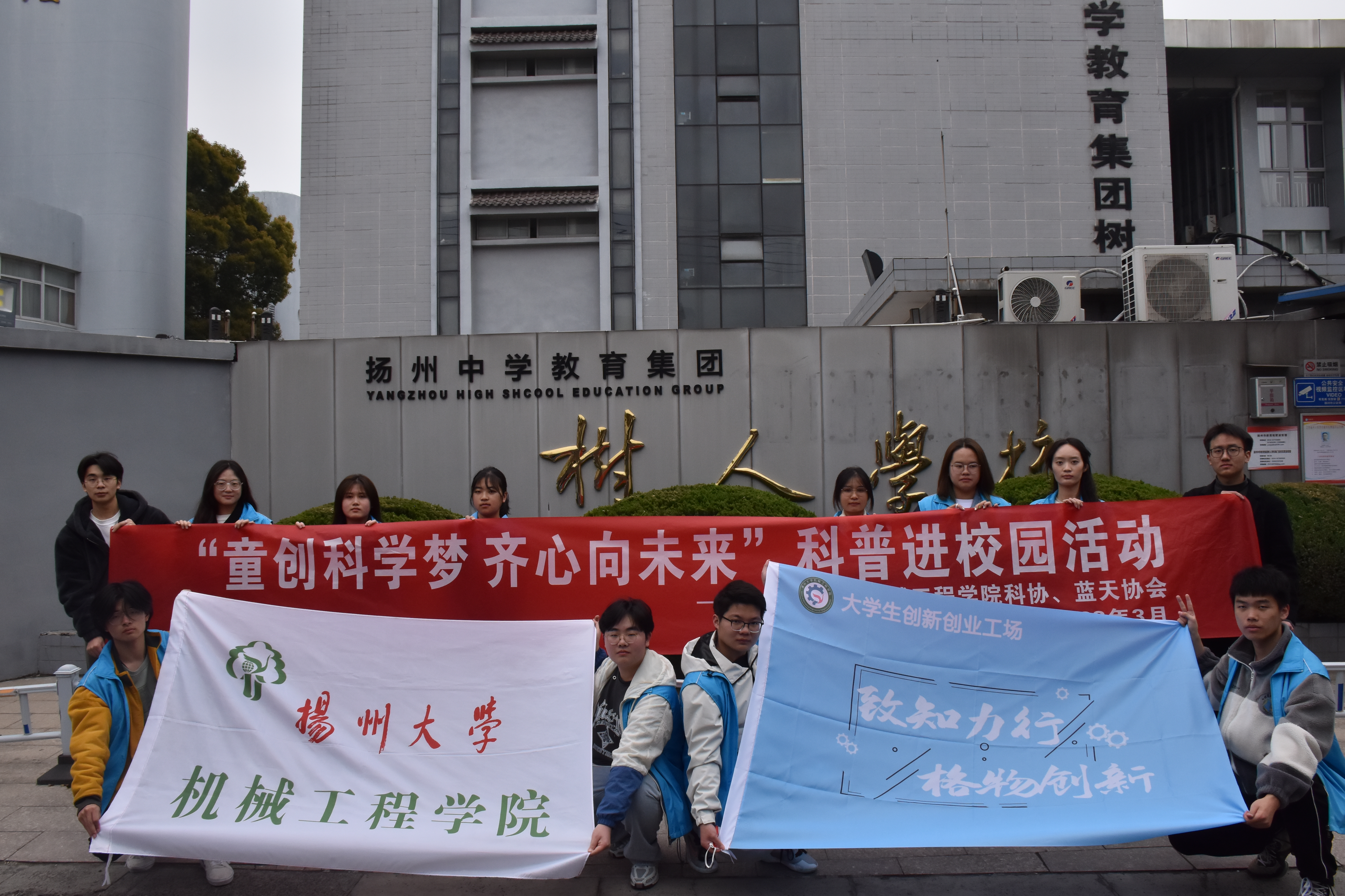 3月20日上午,我院辅导员单小伟,学生科学技术协会、社联蓝天协会、宣报中心部分成员前往扬州中学教育集团树人学校,参加树人学校南门街校区举办的第十二届科技节,开展“童创科学梦,齐心向未来”科普进校园活动。