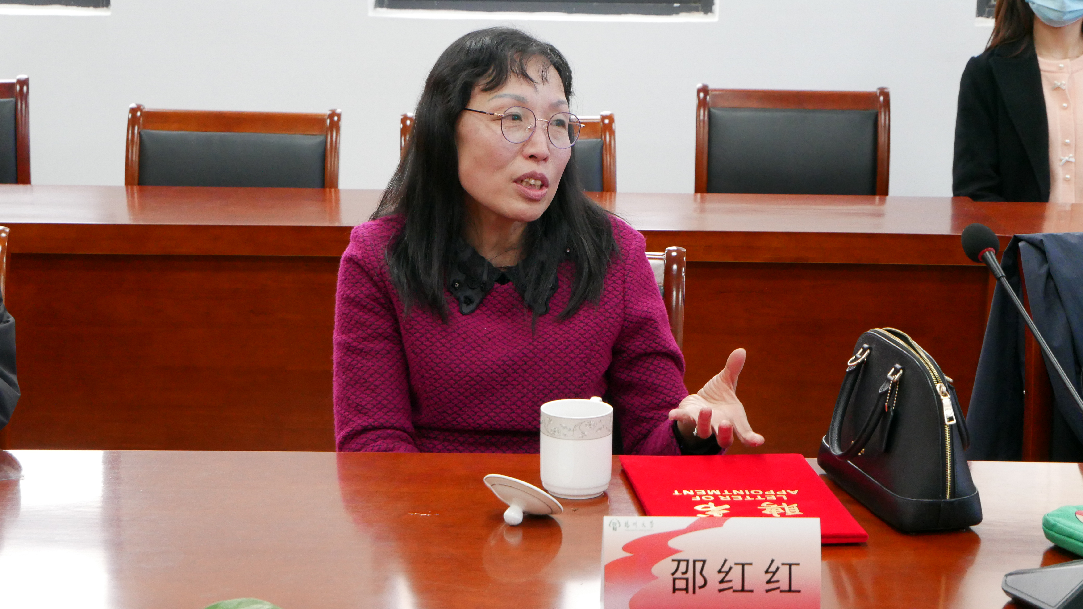 会议伊始,学院聘请邵红红教授为“双创导师”并颁发聘书。李大玉老师播放视频,并从“专业简介”“π教学团队简介”“工作想法”三个方面向邵红红教授和在场师生介绍了我院材料专业的教学团队构建和人才培养模式,展现出了我院材料专业师生一直以来的不懈努力与取得的丰硕成果。