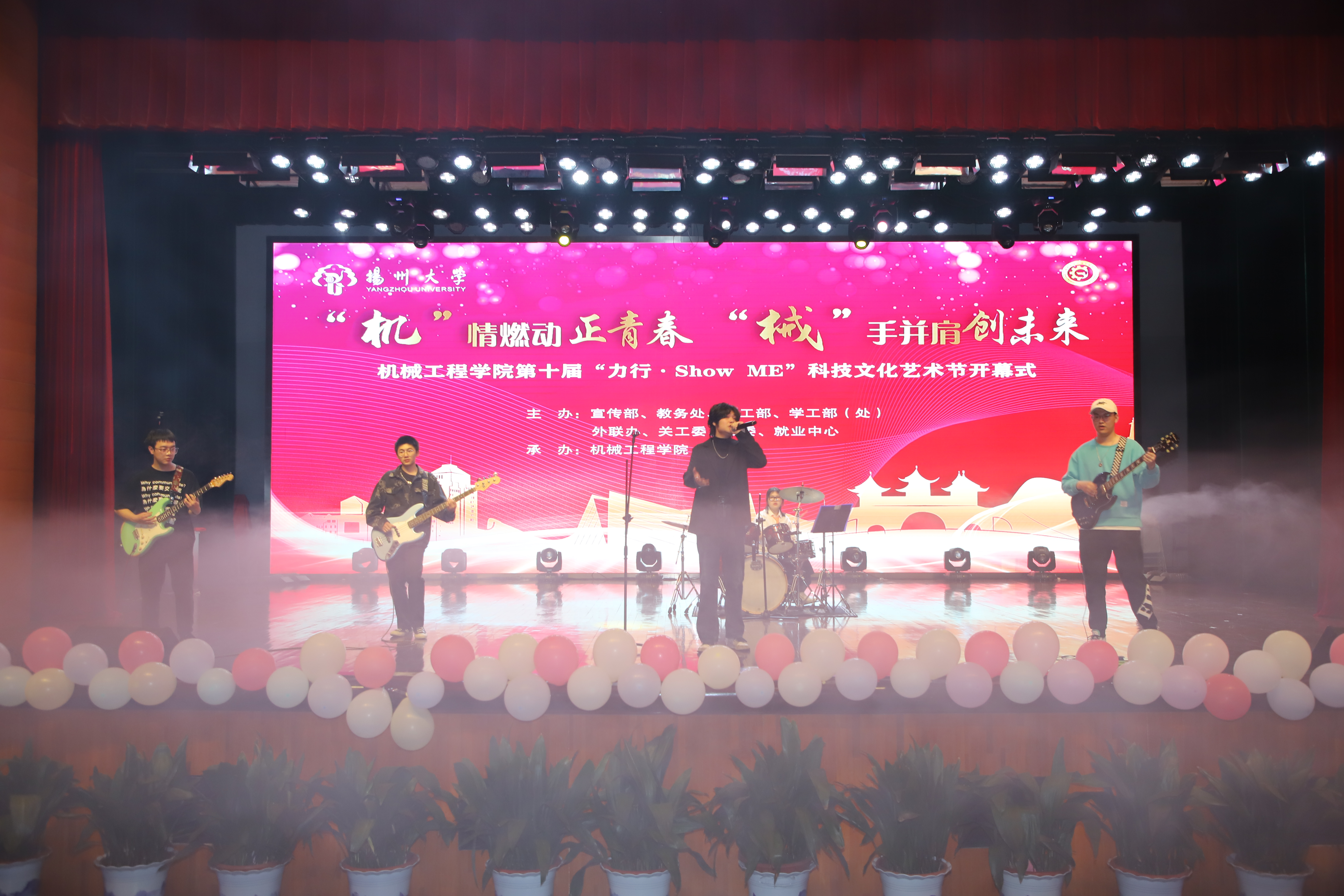 5月6日晚,我院于扬子津校区文体馆三楼小剧场举办了第十届“力行·Show ME”科技文化艺术节开幕式。校教务处处长严长杰,校党委研究生工作部部长吴刚,校对外联络办公室、校友会、董事会、教育基金会办公室主任陈克勤,校关工委办公室主任(驻会)兼副秘书长刘汉柏,校团委书记陈佩沛,校就业指导中心主任陈轶群,校党委宣传部副部长刘斯文,校学生工作部(处)副部(处)长周超,扬力等校友企业代表,全体院领导、系主任、辅导员参加活动。