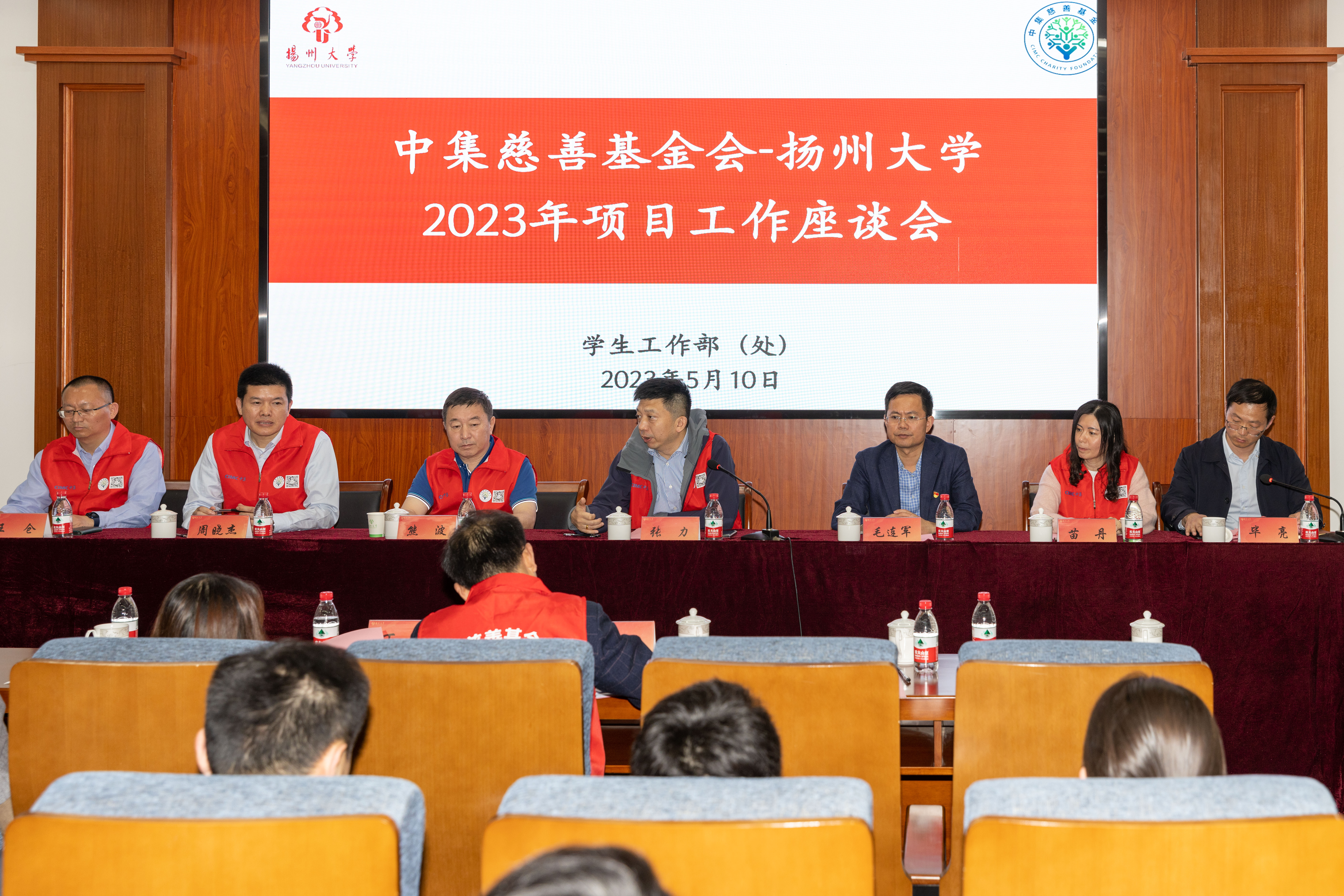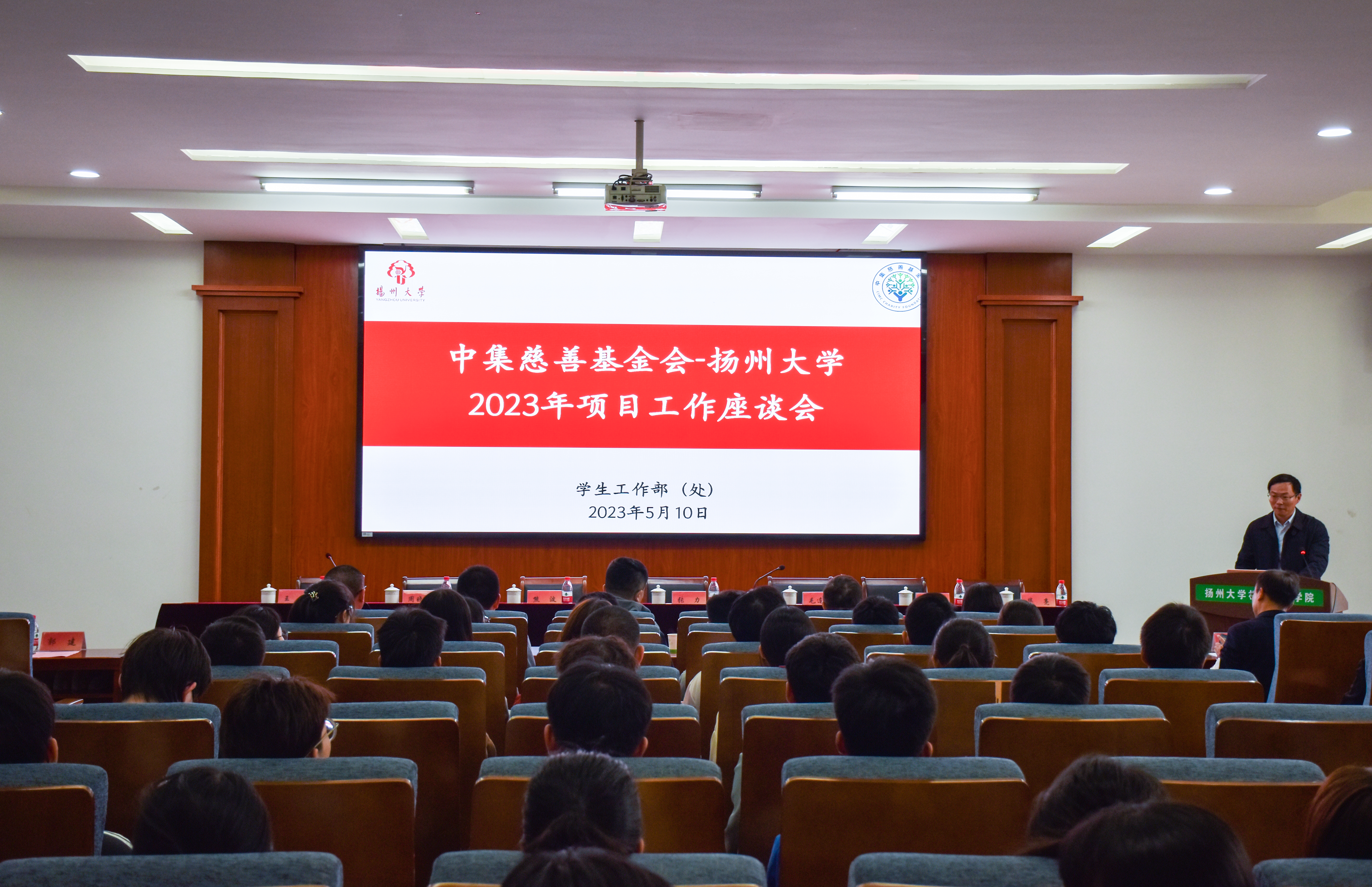5月10日下午,由校学生工作部(处)主办,我院承办的中集慈善基金会——扬州大学2023年项目工作座谈会在力行楼401报告厅顺利举办。中集集团总裁助理、基金会理事兼秘书长张力,中集车辆强罐业务集团扬州生产中心总经理周晓杰,中集集装箱扬州基地副总经理王仓,中集基金会理事长熊波,基金会副秘书长苗丹,扬州中集通华数字化半挂车工厂行政部经理丁婷,扬州中集通华数字化半挂车工厂人力资源部副经理庞建林,校学生工作部(处)副部(处)长、学生资助中心主任毛连军,扬州大学学生资助中心副主任翟永亮,中集工作坊指导老师杨永磊,部分学院资助辅导员代表,2022级“中集助学金”全体学子及研究生指导员参加座谈会。学院党委副书记毕亮主持座谈会。