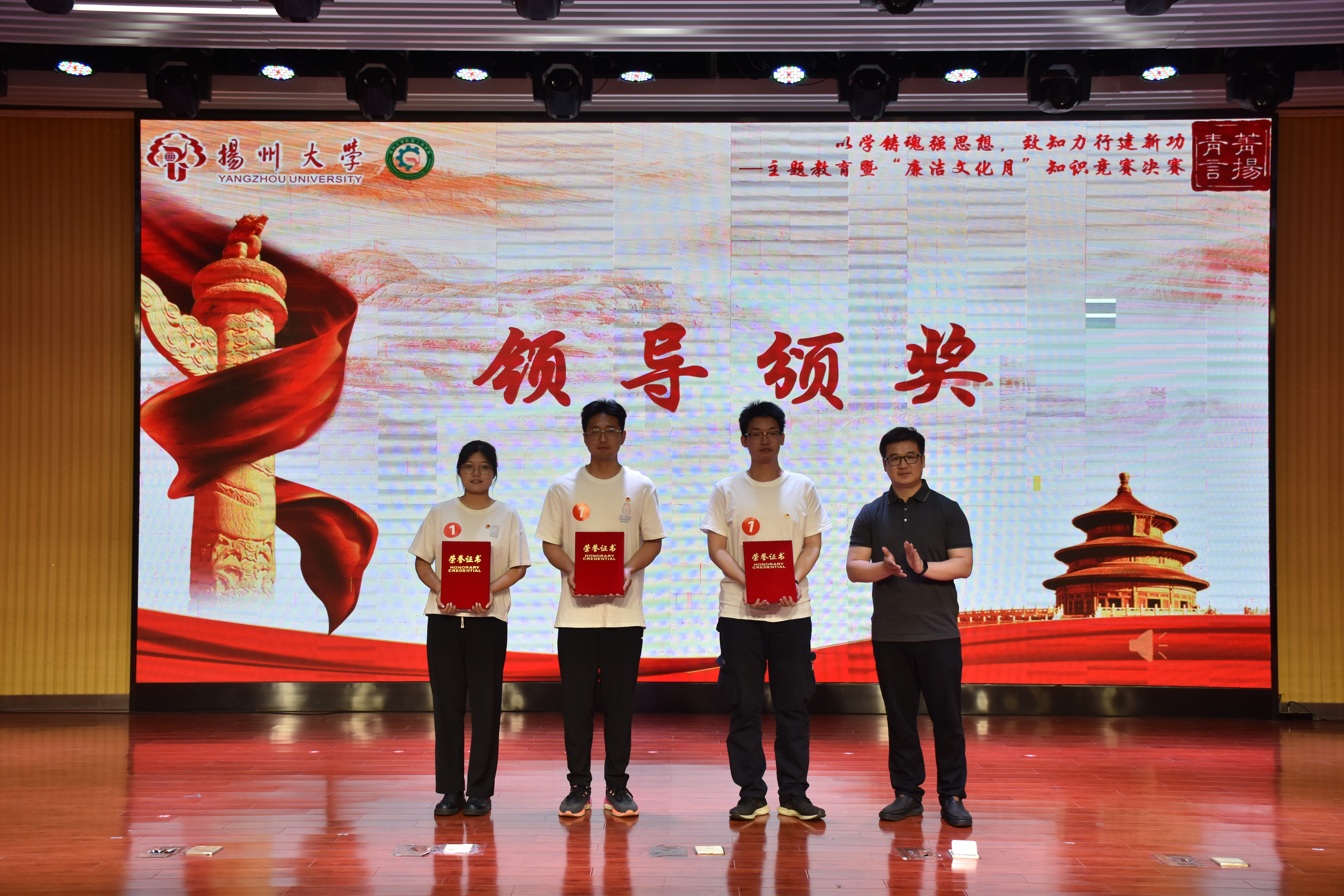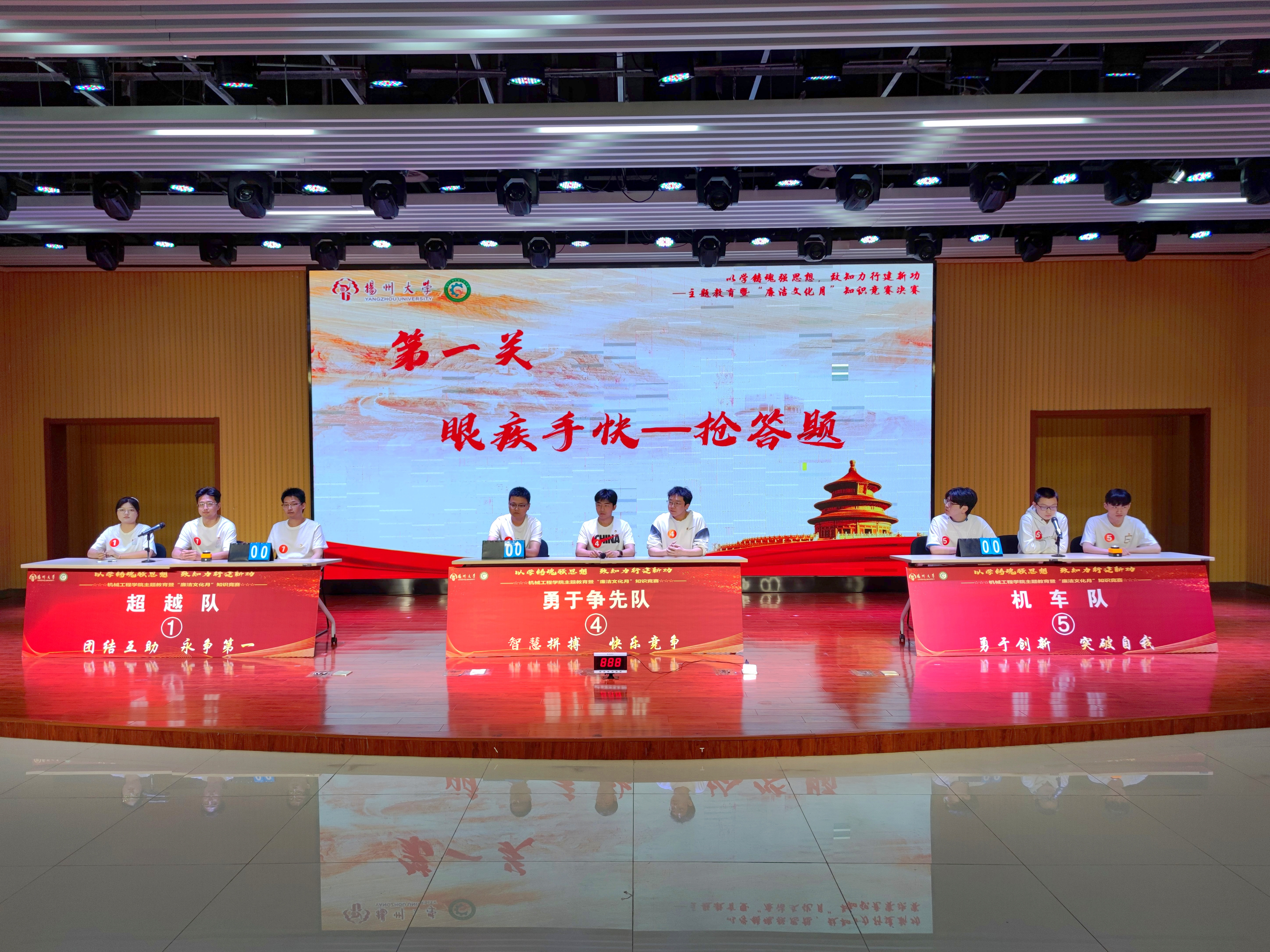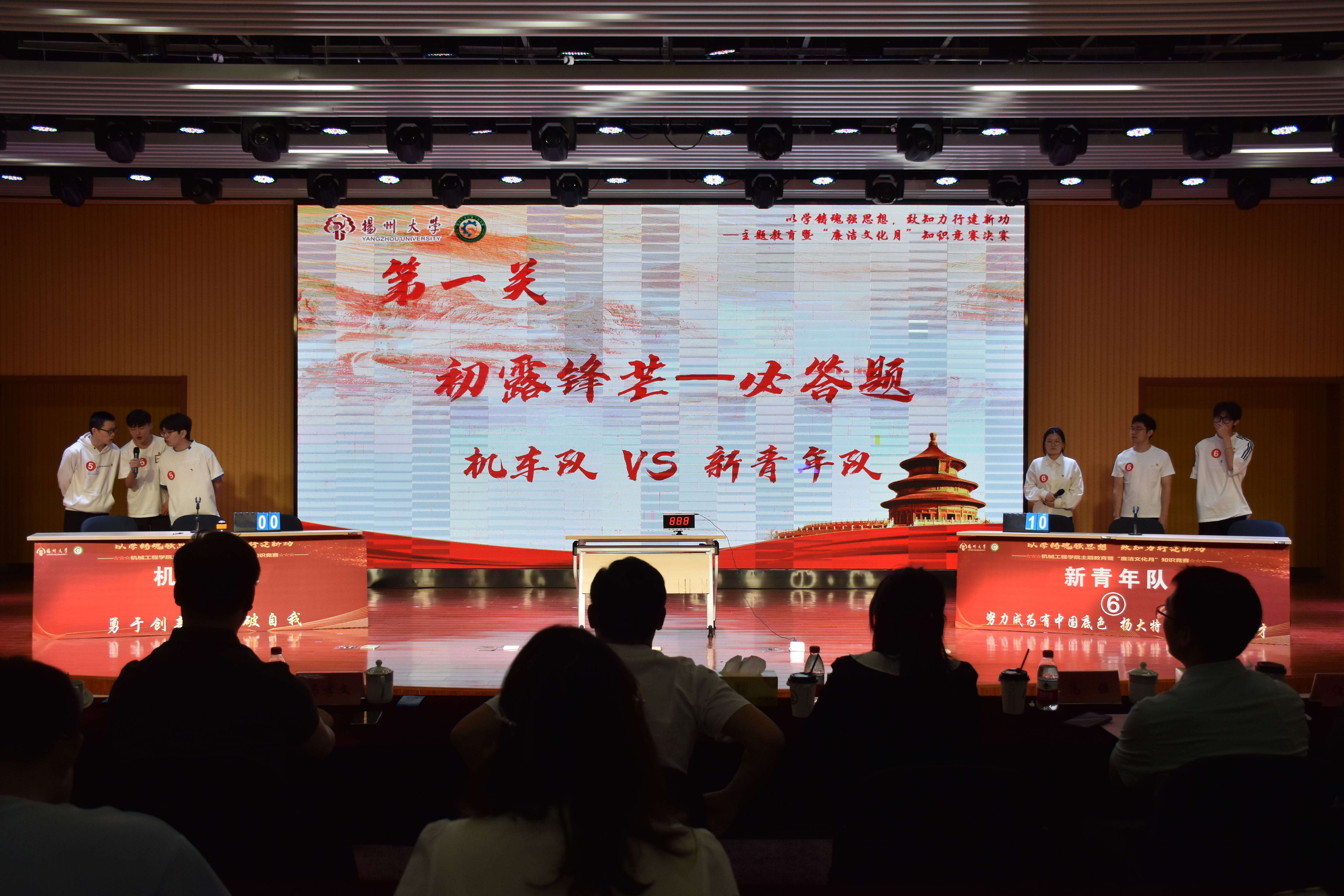 6月4日上午,我院于扬子津校区文体馆智慧就业大厅举办“以学铸魂强思想,致知力行建新功——主题教育暨‘廉洁文化月’知识竞赛决赛”。本次活动系研究生思想政治工作精品项目系列活动之一。学院党委副书记毕亮,纪委监督检查处纪检员谢洁菱,党委组织部组织员马孝文,党委宣传部理论教育科科长徐丹丹,党委研究生工作部研究生思想教育科科长徐佳,党委学生工作部(学生工作处)学生思想教育科科长高强,校团委青年发展部副部长陈永生,学院团委(学工办)书记(主任)汪志国出席活动,学院本硕学生代表参加活动。