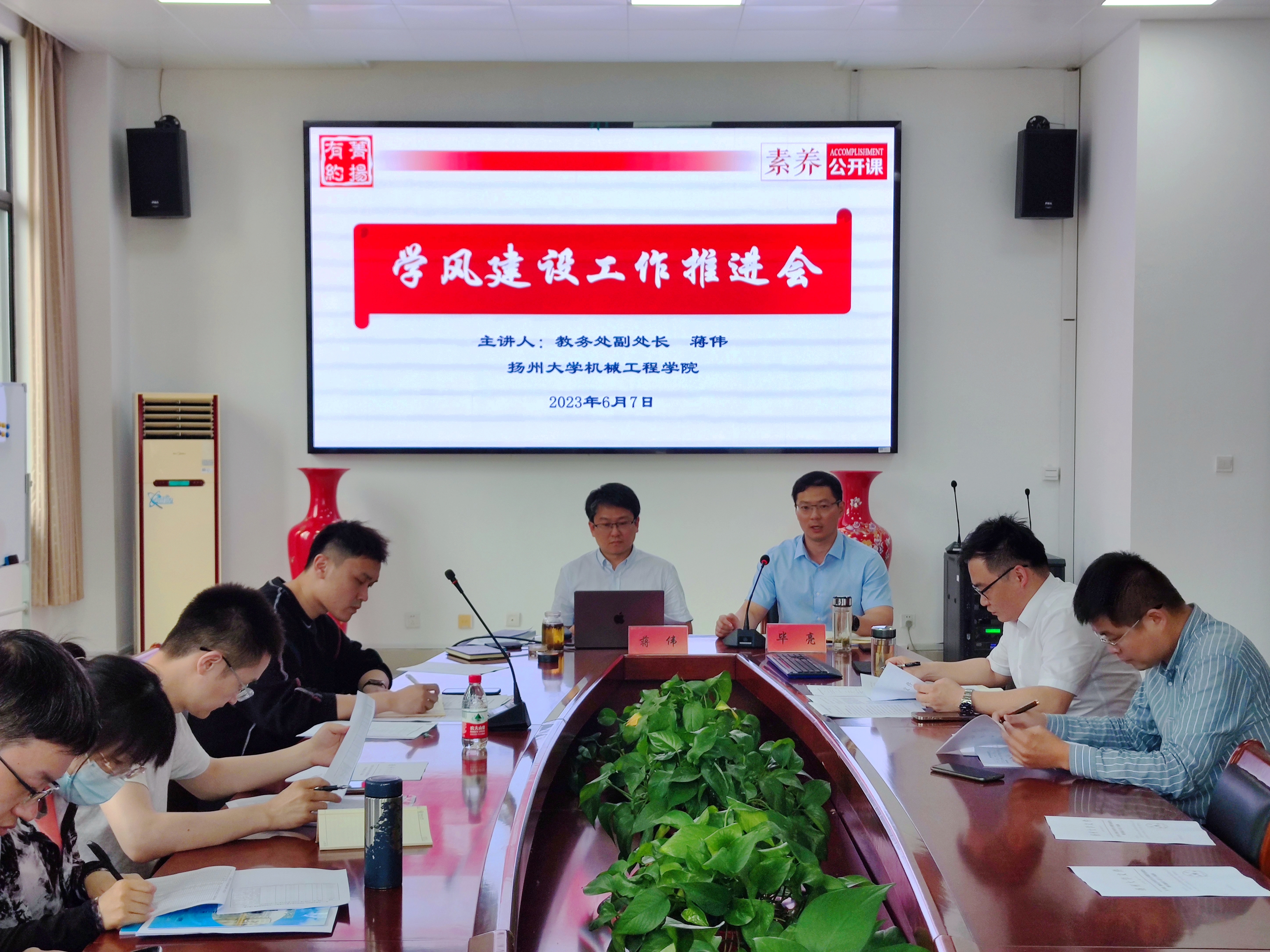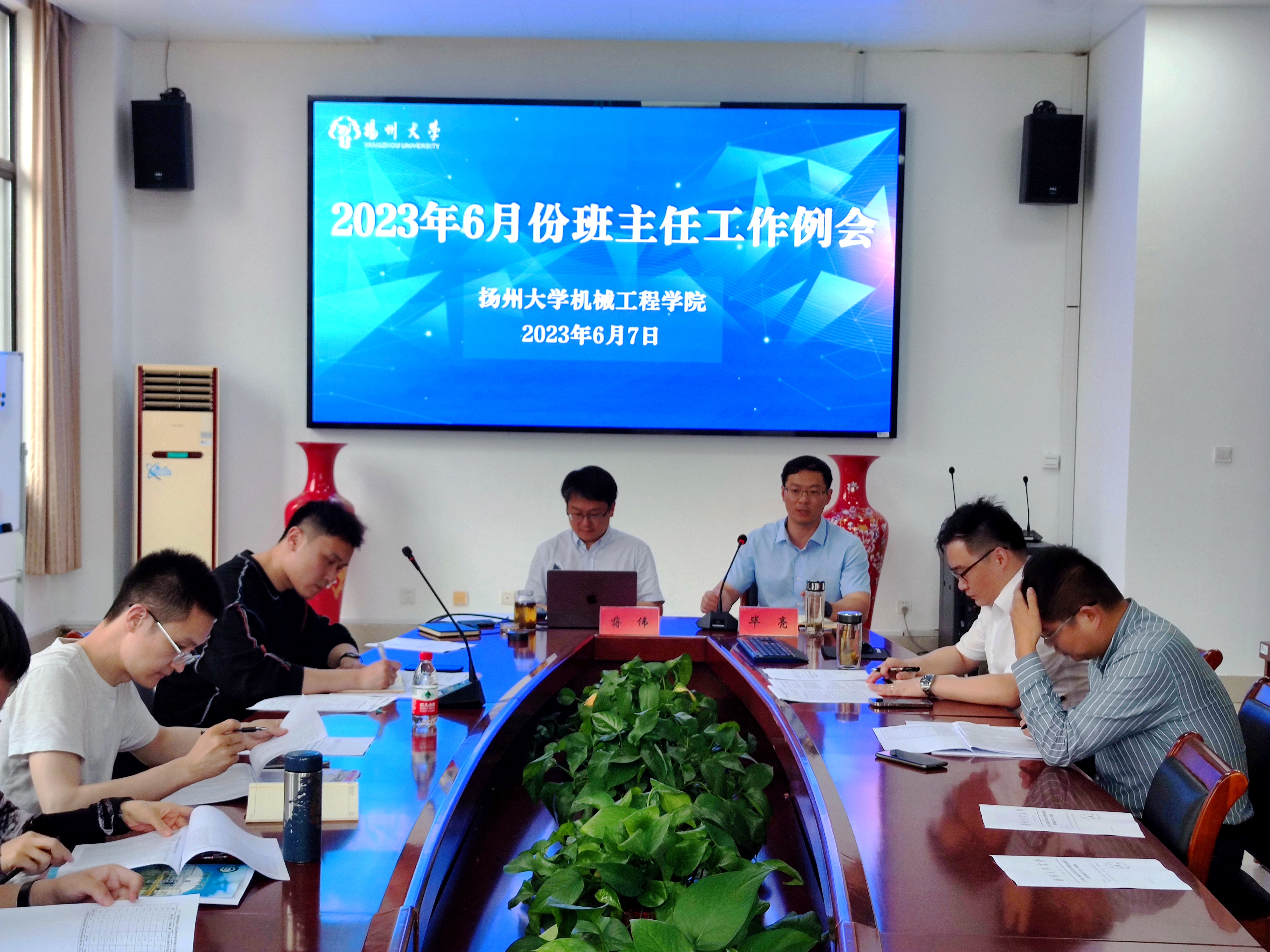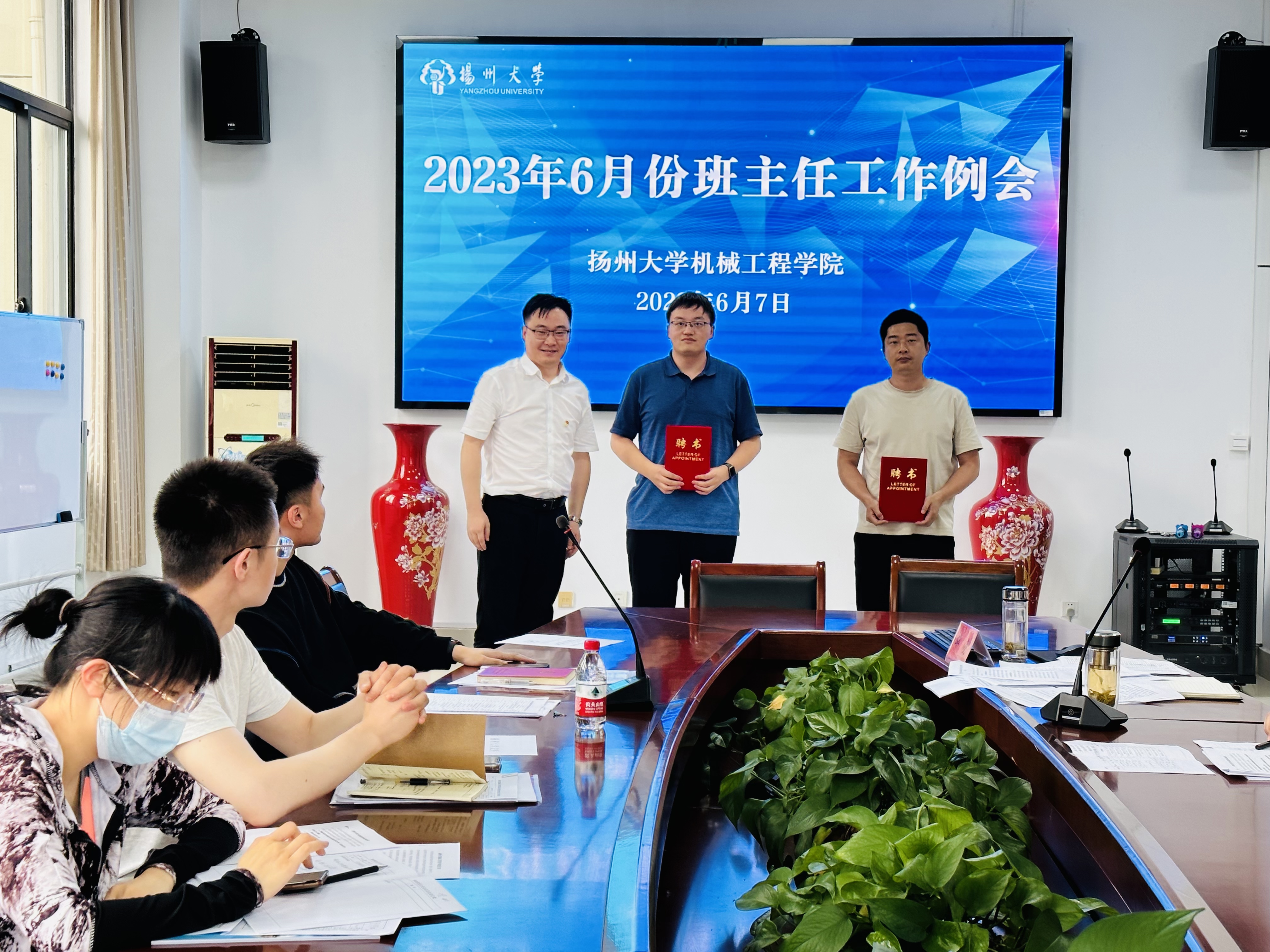 会上,蒋伟副处长开展了学风建设工作推进会讲座,从为什么预警帮扶,学校提供的组织保障,预警帮扶标准,学业预警流程,学业帮扶建议等方面深度解读了《扬州大学本科学生全周期学业预警与帮扶实施办法》。学院学工办主任汪志国老师对毕业生文明离校、就业推进、诚信考试、三大赛备赛、学生暑期实践等工作进行了具体布置。随后,毕亮副书记向全体班主任提出三点要求:一、要严管学生,确保教育提醒到位;二、要善待学生,确保关心关爱到位;三、要加强联动,确保工作执行到位。同时要求全体班主任于近期召开班会。最后,学院聘请了两位老师为团委兼职副书记(教职工)。