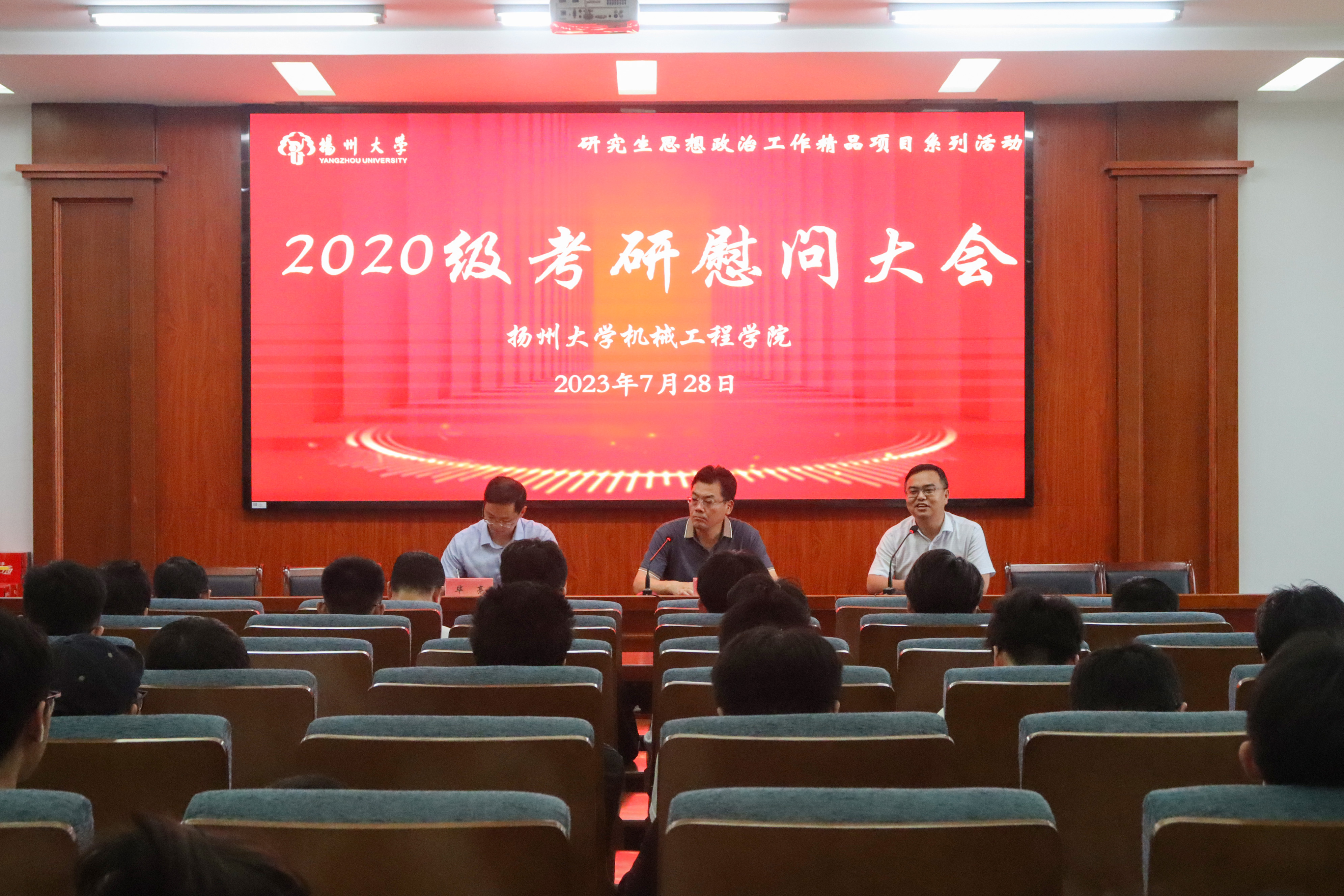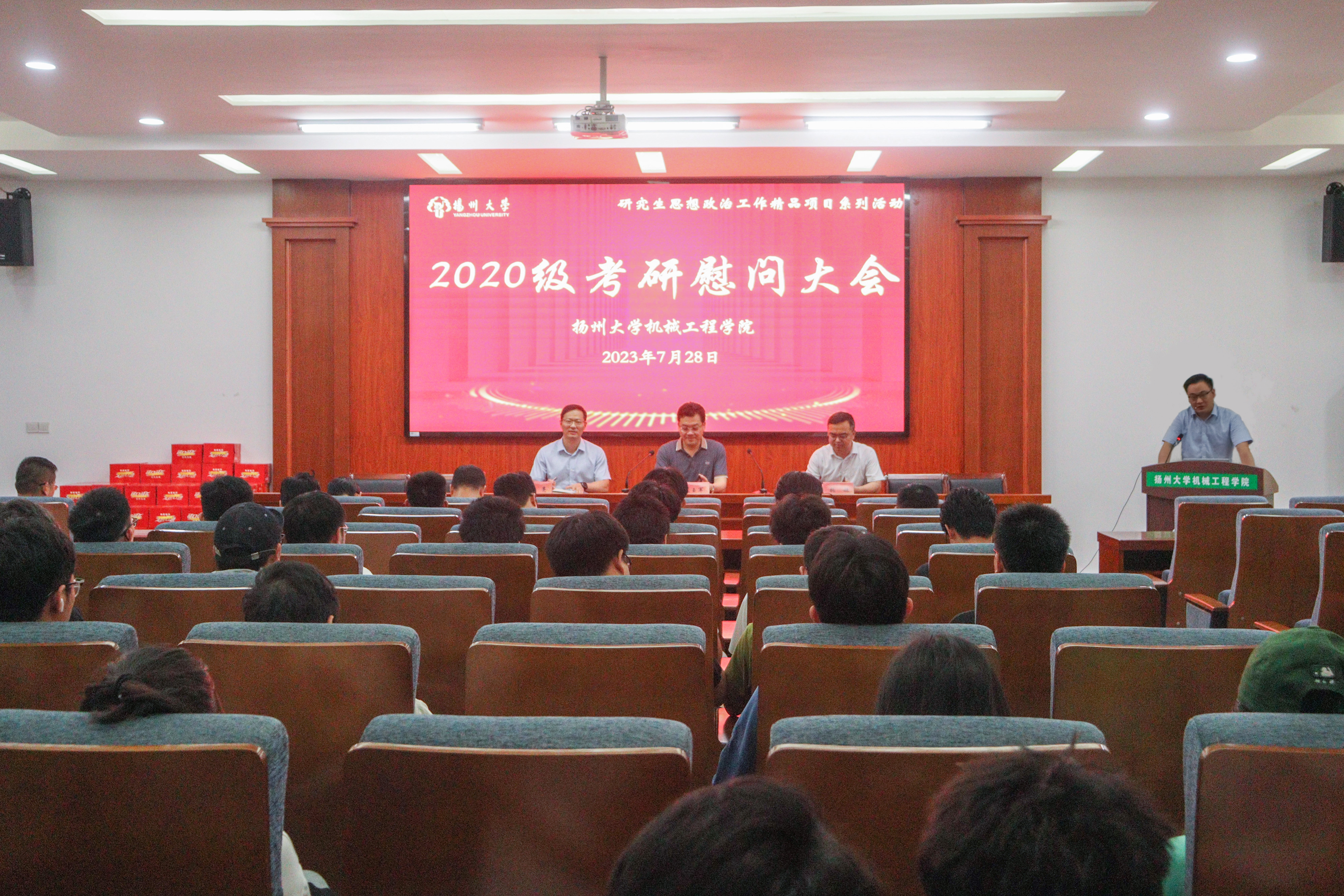 7月28日下午,机械工程学院于力行楼401报告厅举办2020级考研慰问大会。学院党委书记尤玉军、院长张超、党委副书记毕亮出席大会,学院2020级留校考研学生参加会议,院团委书记汪志国主持会议。