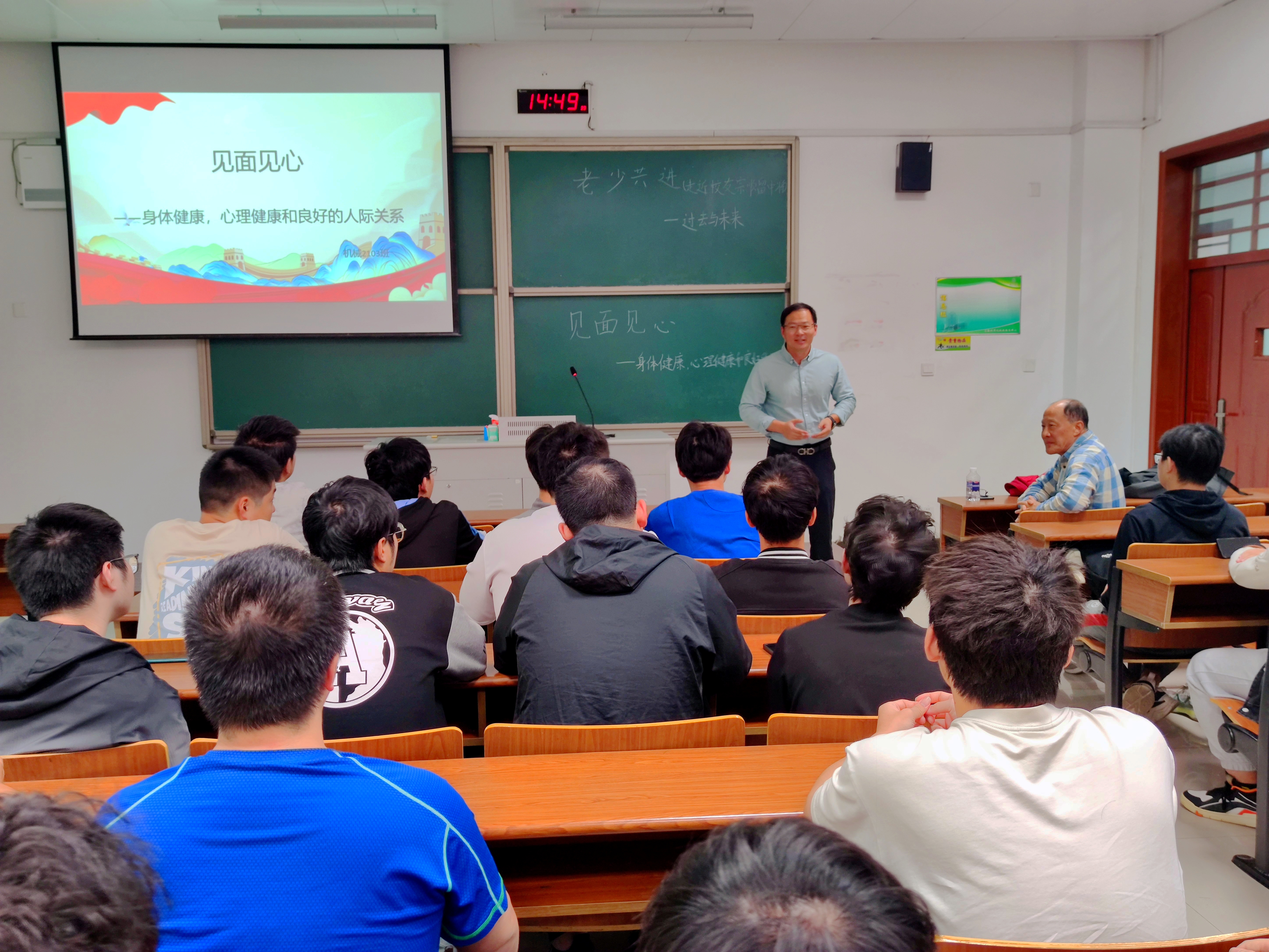 在“见面见心——身体健康,心理健康和良好的人际关系”讲座中,张爷爷结合自身经历和见闻,阐述了保持身体、心理健康,维持良好人际关系之间的联系与重要性,对同学们提出“从哪里来””“到哪里去”“我是谁”等问题,嘱托同学们保持身心健康,同时明确自己的定位和今后的发展方向。