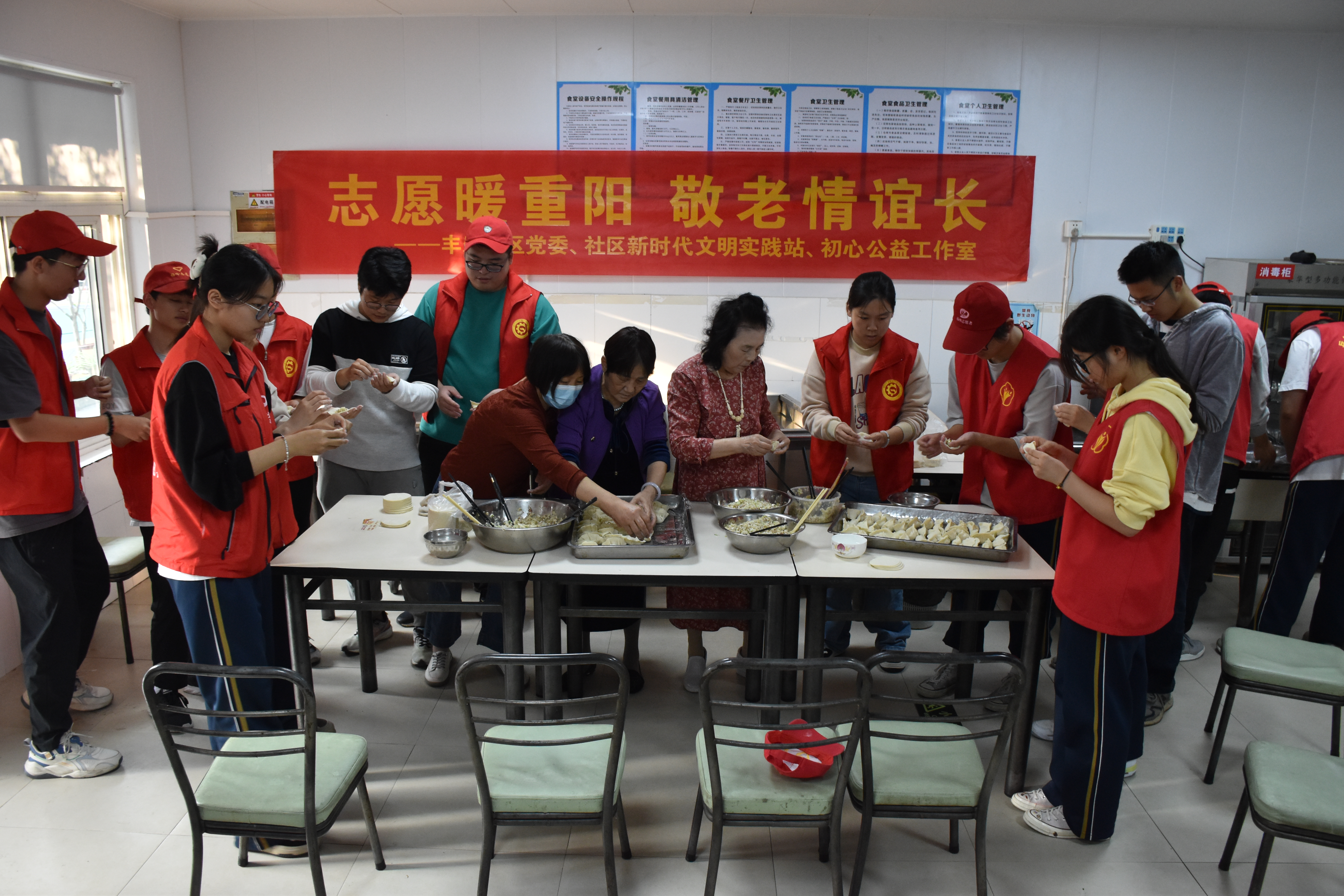 来到社区,我院青协志愿者同学,根据社区相关负责人的安排,帮助华安老年公寓的老年人打扫卫生、按摩肩颈、谈心解闷,为公寓老年人提供力所能及的帮助。随后,青协志愿者与其他志愿者一起参与到为老人们包水饺的活动中,从择菜、制作肉馅到包水饺,志愿者们全身心投入,旨在为公寓老人们送上重阳节的祝福