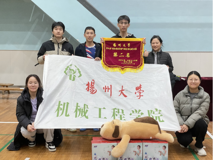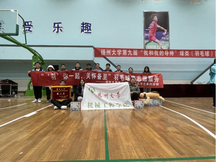 11月18日,扬州大学成功举办“我和我的导师”羽毛球赛,由赵毅红老师、张宝峰老师、李鹭扬老师、张泽远同学、许镒濠同学、丁淑梅同学和陈美伶同学组成的我院代表队表现出色,荣获亚军。