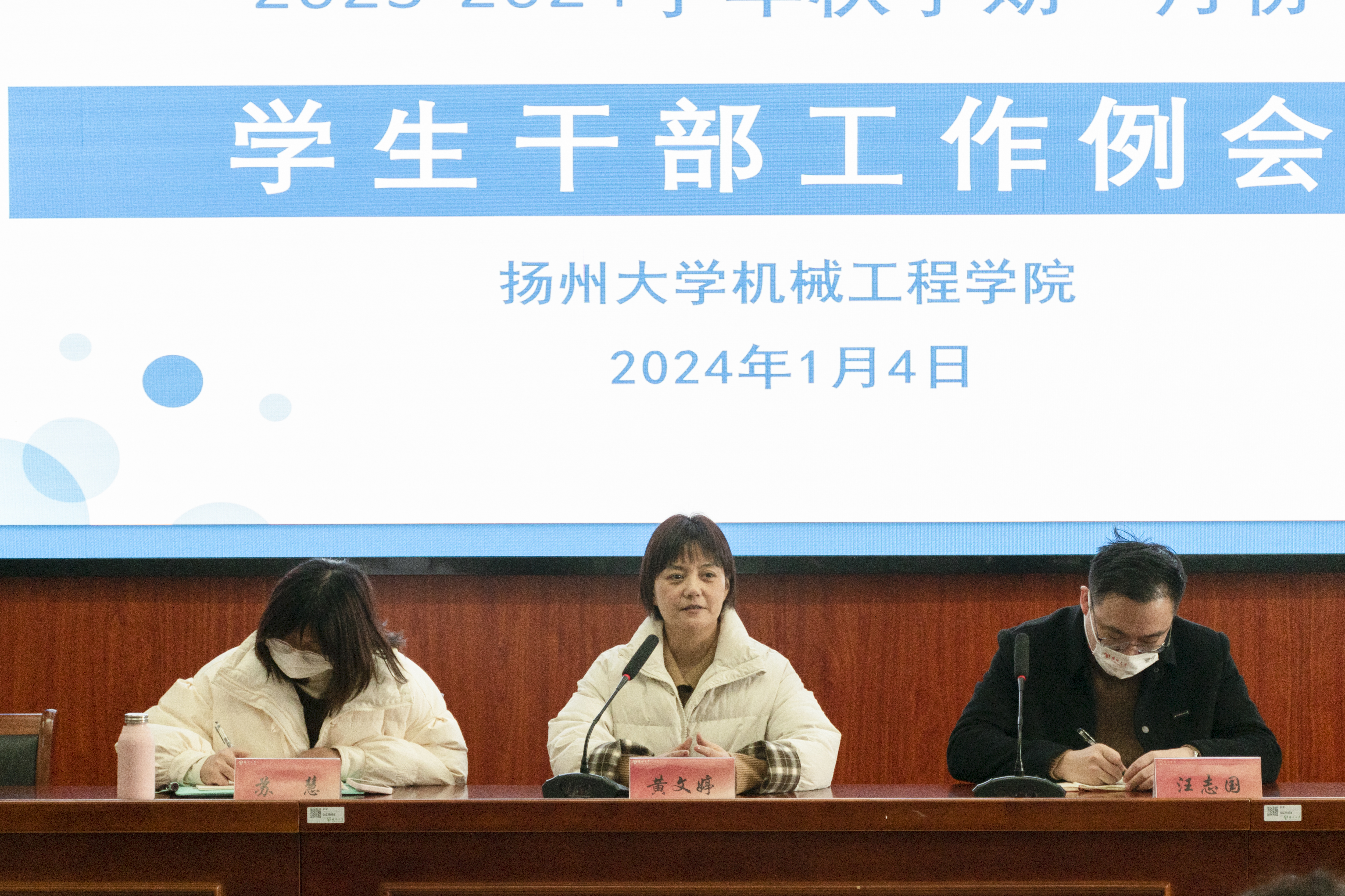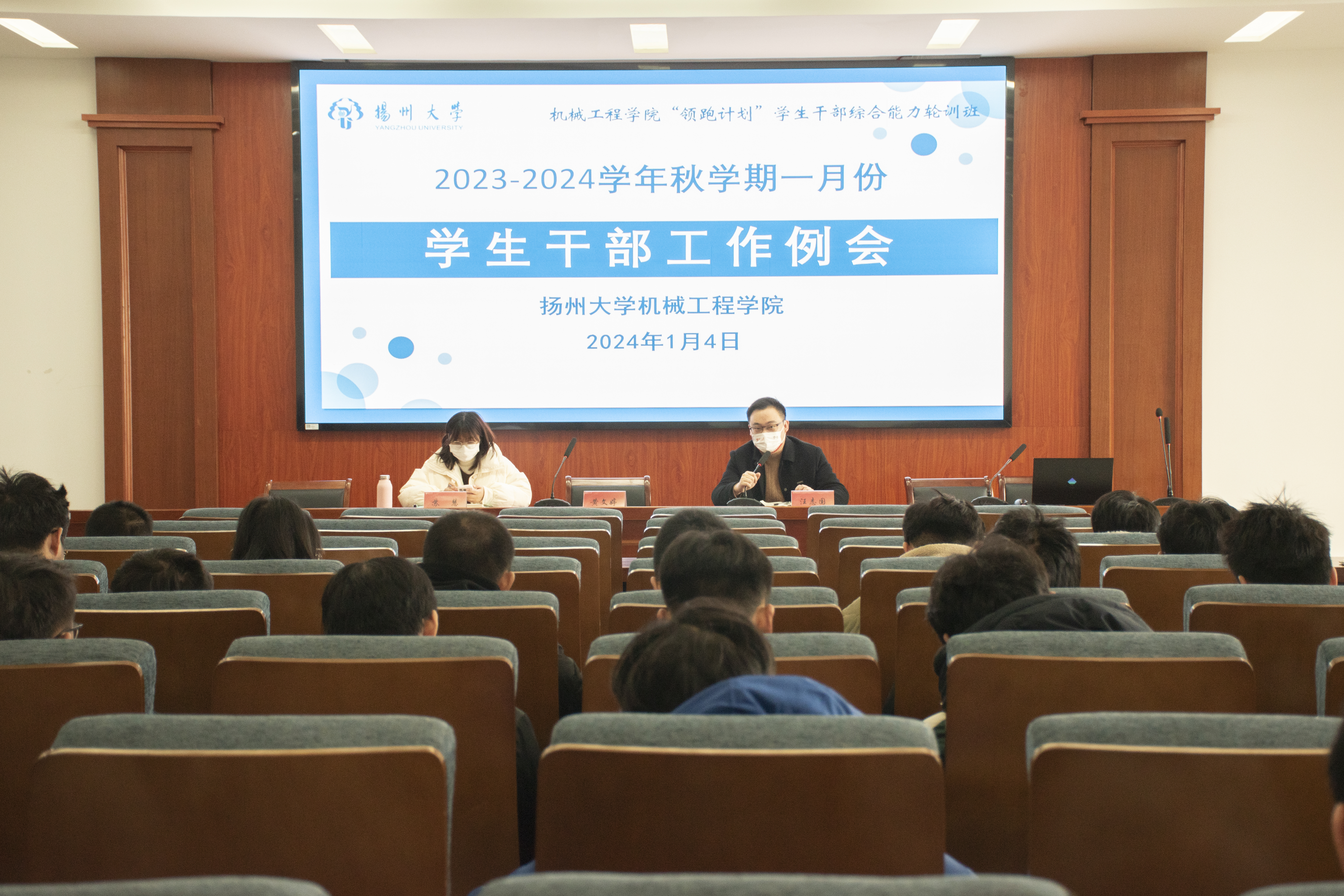 1月4日中午,我院在力行楼401报告厅召开了2024年1月份学生干部工作例会。学院党委副书记黄文婷,学院本硕各班级班长、团支书参加本次会议。会议由团委书记汪志国主持。