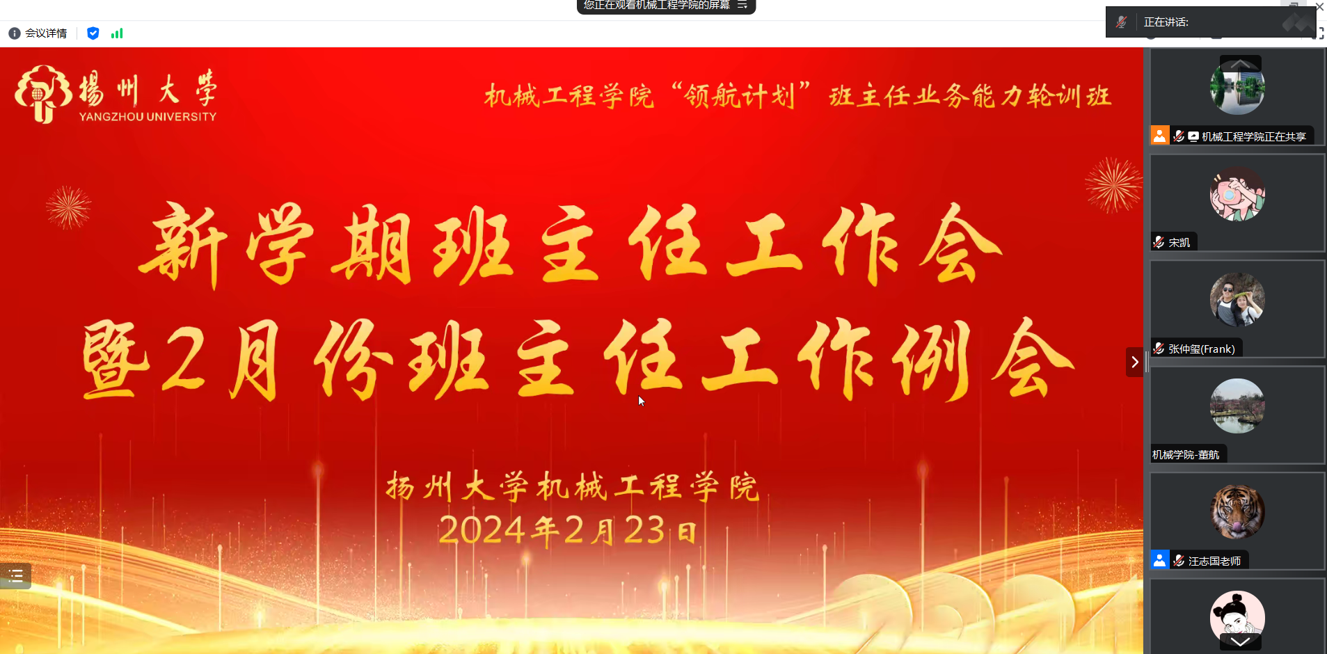 此次会议为新学期的学院班主任工作奠定了良好的基础,同时进一步明确了下一步班主任工作的方向和要点。
