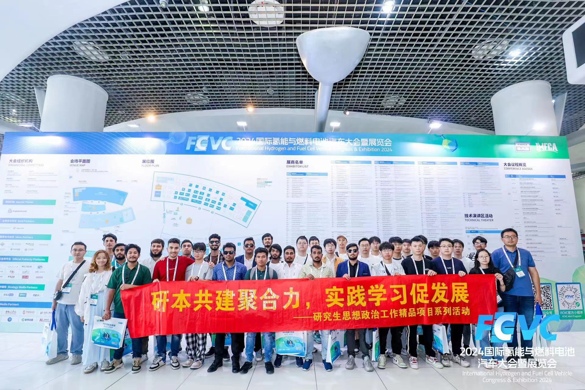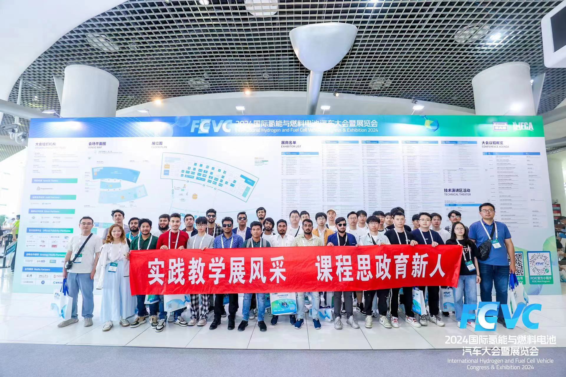 为加深研究生和留学生对车辆工程前沿技术的理解,2024年6月4日,我院组织三十余名研究生及留学生前往上海共同参与了由中国汽车工程学会与国际氢能燃料电池协会联合主办的“2024国际氢能与燃料电池汽车大会暨展览会(FCVC 2024)”。