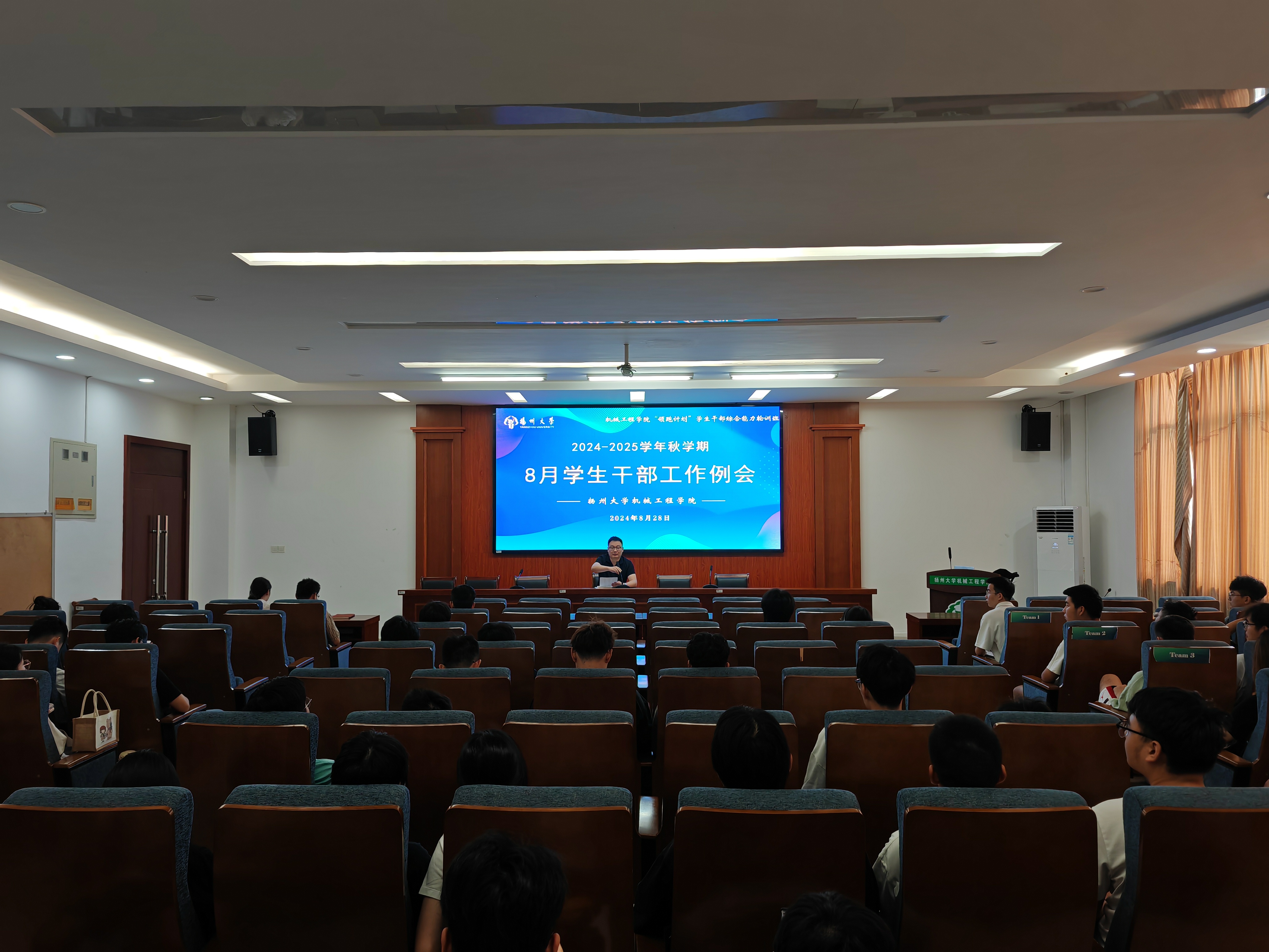 8月29日上午,我院在力行楼401报告厅召开了2024年8月份学生干部工作例会。学院辅导员老师代表,各学生组织干部,本硕各班级班长、团支书参加此次会议。会议由学院团委书记汪志国主持。