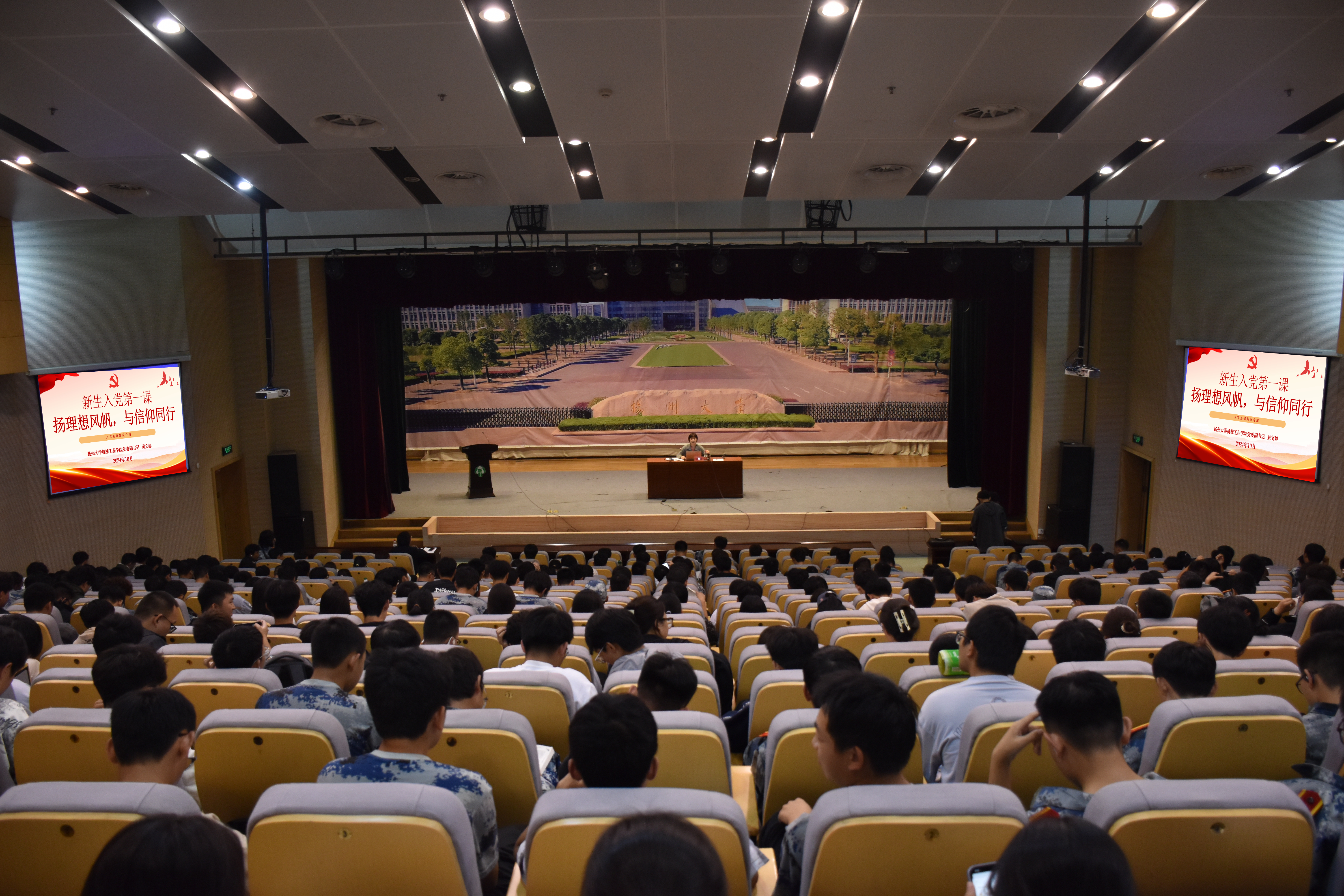 10月14日,我院在昭文馆报告厅举行新生入学教育讲座第七讲——“扬理想风帆,与信仰同行”新生入党第一课。此次讲座由院党委副书记黄文婷主讲。