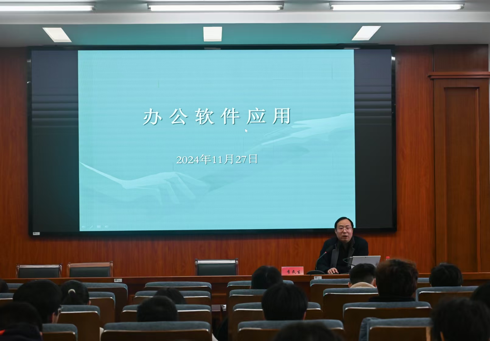 在开班仪式后,进行了本次培训会的第一讲。李民生老师在讲座中结合生活实际与学生工作特点,指出了成为优秀学生干部的包含四个要点:提升个人能力、增加就业竞争力、获得更多机会、促进个人成长。并针对学习使用各类办公软件的进行了详细的讲解。